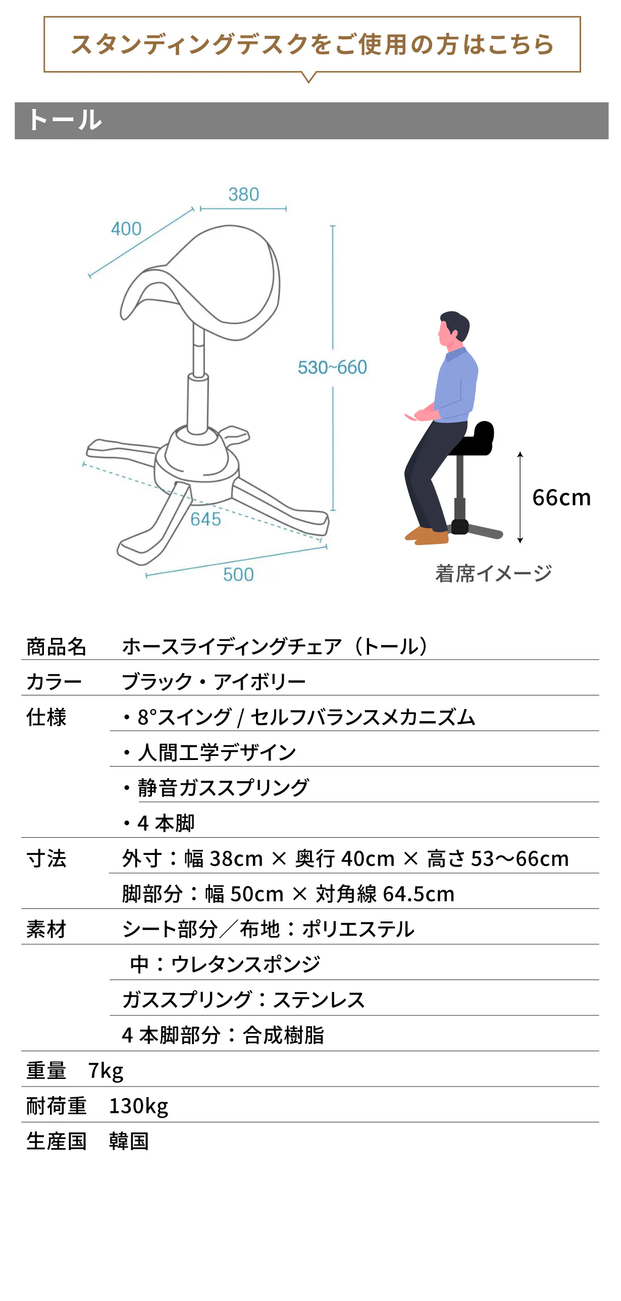 (トール)53cmから66cmまでシートの高さをご調整いただけます。