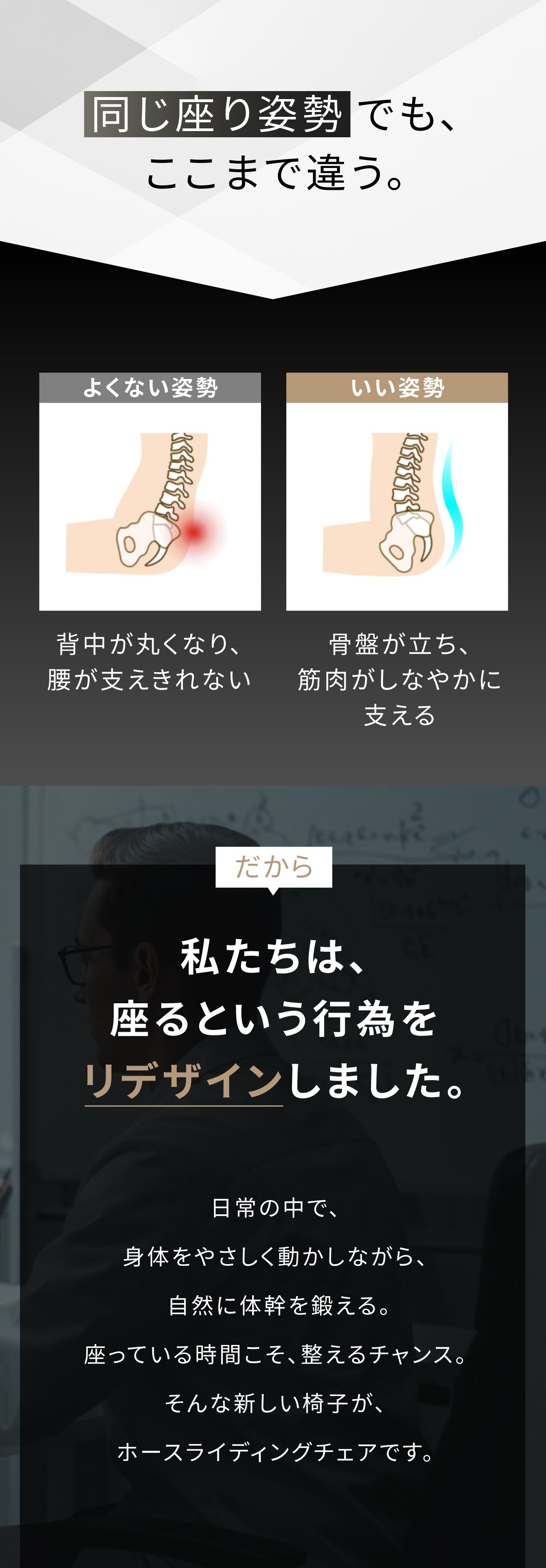 ですが実際は、背もたれに“もたれかからない”ことで、 骨盤が自然に立ち、