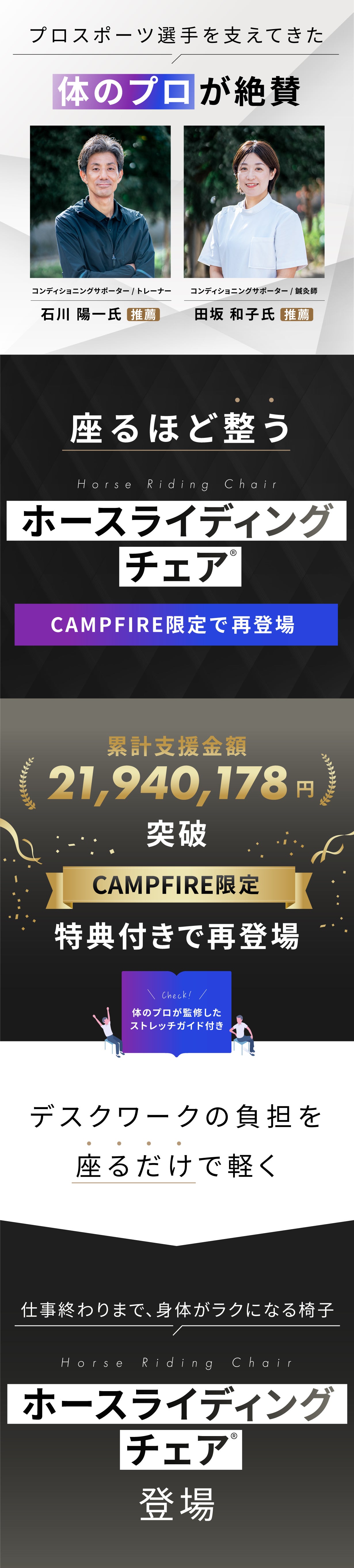 この度、韓国のチェアマイスター社と日本独占契約を締結し、CAMPFIREより、「ホースライディングチェア」の日本先行販売が実現できる運びとなりました。