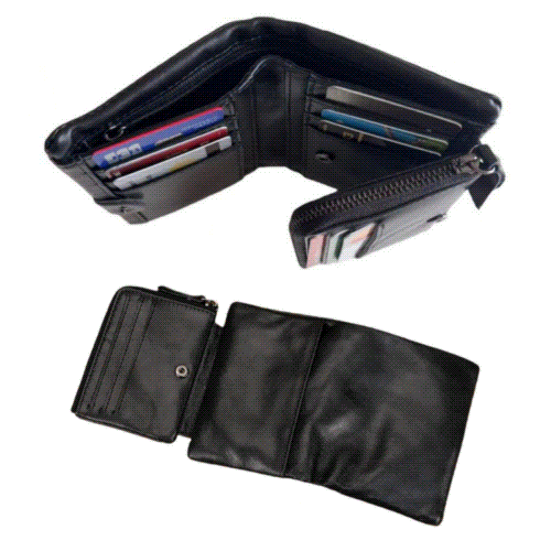 本革レザー二つ折り財布 × 1(男女兼用・使いやすい薄型)