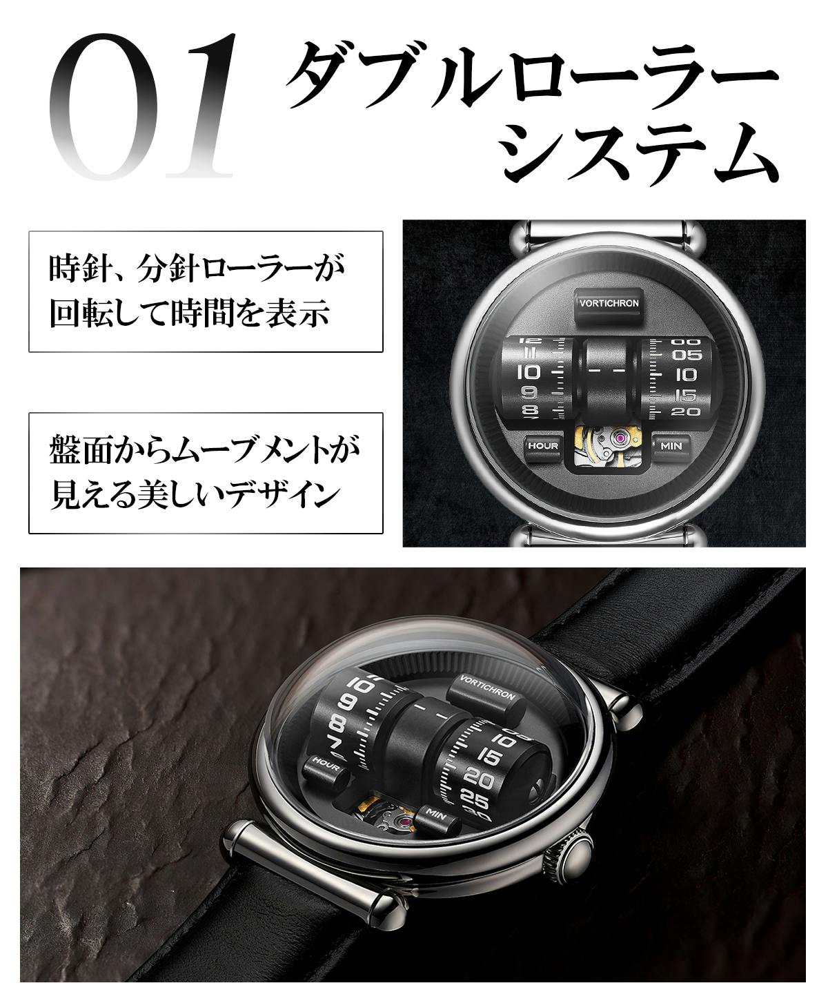 VORTICHRON WATCHESより、革新的なデザイン且つ高貴な印象を与えるダブルローラー式自動巻き腕時計をご紹介します。