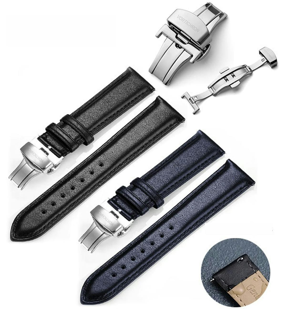 ステンレス製の固定具が付属された18~20mmの本革ストラップが付属されます。