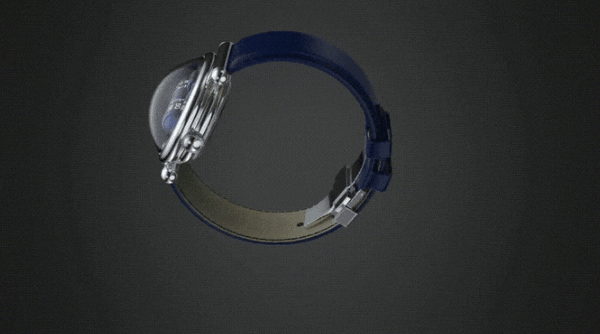 時計の裏面はムーブメントを見ることができるスケルトン仕様になっており、厚さわずか3.90mmのムーブメントが駆動する姿を表裏どちらからでも見ることができます。
