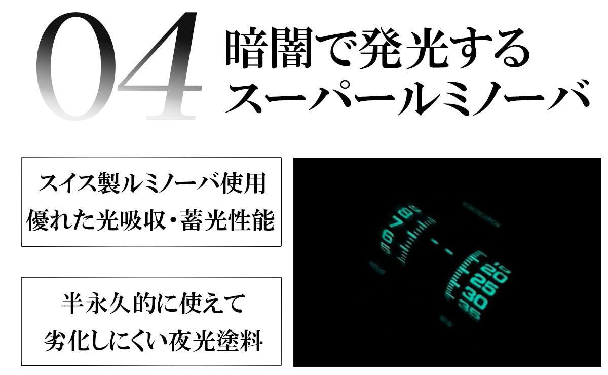 スイス製スーパールミノーバを採用したことで、あらゆる照明条件において優れた視認性を提供します。