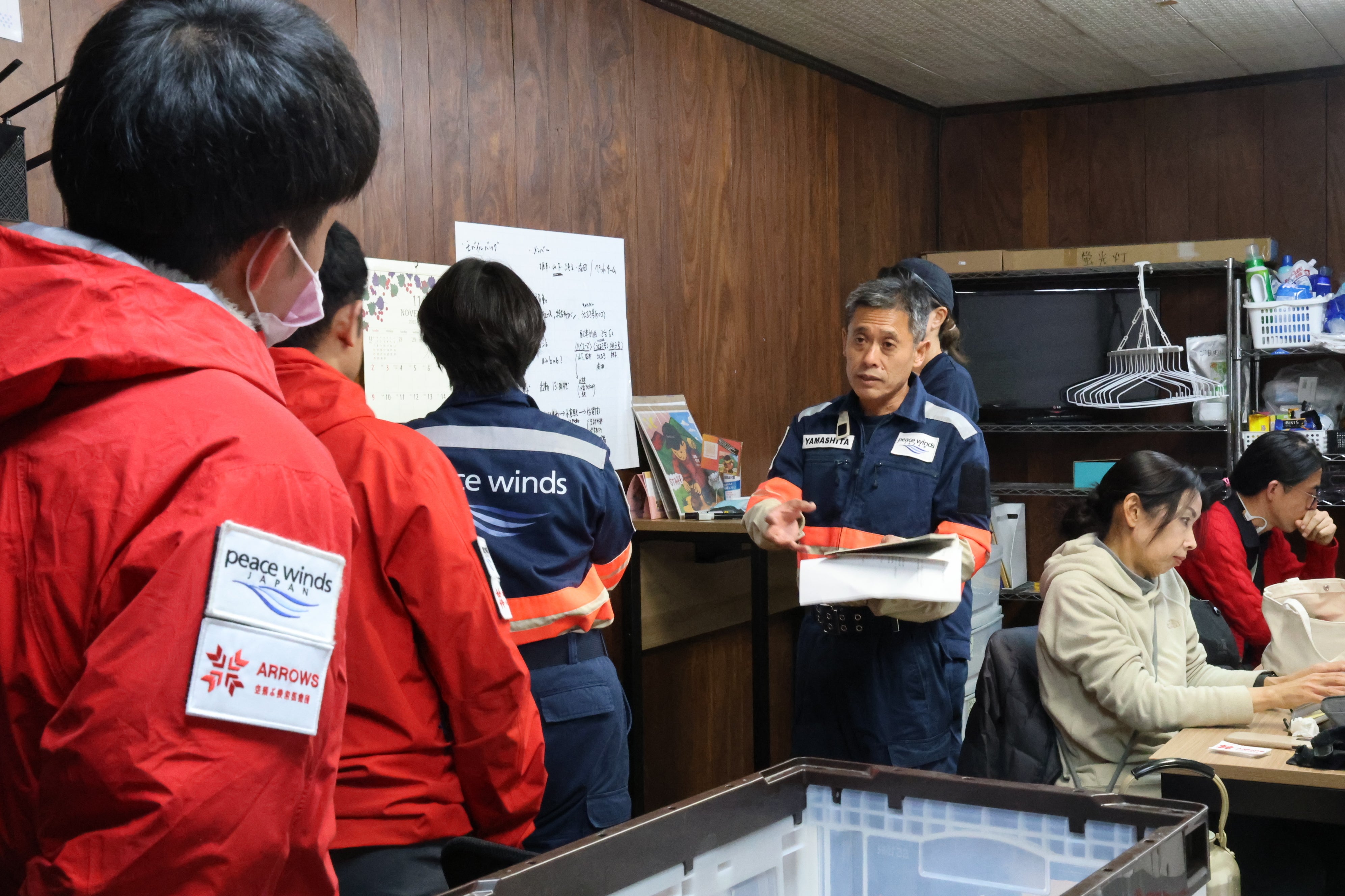2025/11/21 09:00発災から2日目を迎えた大分市佐賀関で起きた大規模火災。消防庁対策本部によると、延焼面積は約48,900㎡におよび、20日時点でまだ鎮火の目途は立っていない状況で、警察・消防に自衛隊のヘリコプターも投入された消火活動が続けられています。19日夜、現地に到着した空飛ぶ捜索医療団“ARROWS”の緊急支援チームは、その日のうちに関係者と連絡をとり状況把握に努め、20日以降迅速に支援活動を始められるように準備を進めました。家がどのような状態なのか、確認することができない20日朝、空飛ぶ捜索医療団のメンバーはまず最初に佐賀関市民センター内佐賀関公民館の避難所にてニーズ調査を開始。発災初日は121世帯180名が避難していましたが、この2日の間に避難所を離れる方がみられ、避難者の数は73世帯111名まで減少していました。数字的には大きく減りましたが、避難解除はまだ発表されていないことから避難生活が続いていることに変わりはなく、避難所の方々も含めて多くの被災者は支援を必要としています。一夜にして日常を奪われたこの避難生活をさらに難しいものにしているのが、「家がどのような状態なのか」を確認できないという状況です。火災の場合、基本的に鎮圧状態となり、避難解除が発令されない限り、多くの避難者は家に戻ることはおろか、家の状況さえ確認する術がありません。このことがさらに不安や苛立ち、ストレスとなって避難者を疲弊させる要因となっているのです。11月20日午前中の避難所の様子。避難者は床に薄いマットを敷いた寝床で2日間過ごしたこうした火災特有の問題を抱えるなか、避難所の環境整備の緊急性も確認されました。避難所となっている公民館は広く、設備も充実して室内は暖房で暖められていましたが、避難所としての機能と環境はまだ整備されておらず、この2日間、避難者は床に薄いマットを敷いて雑魚寝状態だったといいます。今回の緊急支援における空飛ぶ捜索医療団の大きなミッションとなるのが、この避難所支援です。避難所運営本部と協議しながらまずは現段階の課題を整理し、避難者にとって少しでも快適に過ごせる環境改善と、避難所運営にあたって必要な体制構築が話し合われました。避難所運営を行う指揮系統の整理をはじめ、避難者の生活を守るために受付の動線や名簿管理、救援物資の管理や整理など、さまざまな課題について話し合う空飛ぶ捜索医療団スタッフまた、避難所には、水や飲食物を中心にさまざまな支援物資が集まり始めてはいましたが、避難者は文字通り着の身着のままで逃げてきたため、多くの避難者から聞かれたのが、衣服類に関する問題です。この状況を受け、空飛ぶ捜索医療団は協力団体とも連携し、下着や肌着、靴下などの衣服類の支援物資を手配。そのほかにも衛生上、避難所内の生活区域は土足禁止とし、代わりにスリッパを用意するなど環境改善の観点も含めた物資を配付する準備を進めていきました。避難所の80%以上が高齢者。懸念される健康状態の悪化避難所の80%以上が60歳以上。高齢者の健康状態を確認する空飛ぶ捜索医療団の坂本看護師不安、苛立ち、ストレスを抱えながら避難生活が長引くことも予想されるなか、懸念されるのが災害関連死にもつながる健康状態の悪化です。インフルエンザが流行し始める時期でもあることから、避難所内の衛生環境の整備と感染予防対策は急務。災害関連死を防ぎ、避難所内の健康をどのように守っていくか、この日は災害支援ナースや社会福祉協議会など医療・福祉に関連する団体との連携なども確認されました。避難所支援は、物資だけでなく、医療・福祉の観点からも避難所運営を考えていかなければなりません。空飛ぶ捜索医療団は、これまでの災害支援で築きあげてきた知見とネットワークを生かし、避難者の健康を守るために、明日以降もやるべきこと、できることを一つひとつ解決していきながら医療・物資支援を連動させた避難所支援を行っていきます。空飛ぶ捜索医療団では、今回の大分市大規模火災にて被害を受けた方々を支援するために、緊急募金を実施しています。皆様の温かいご支援をよろしくお願いいたします。 もっと見る【大分市大規模火災 緊急支援】住宅170棟以上が延焼、125世帯188名が避難。不安な一夜を過ごす