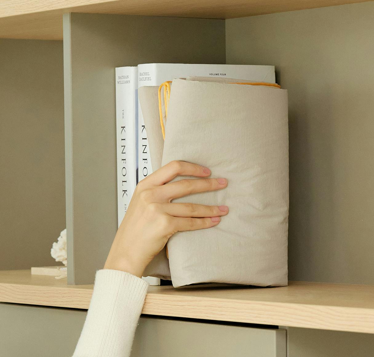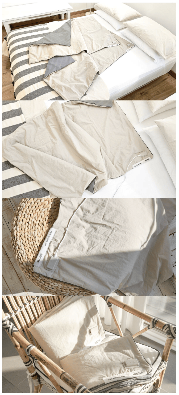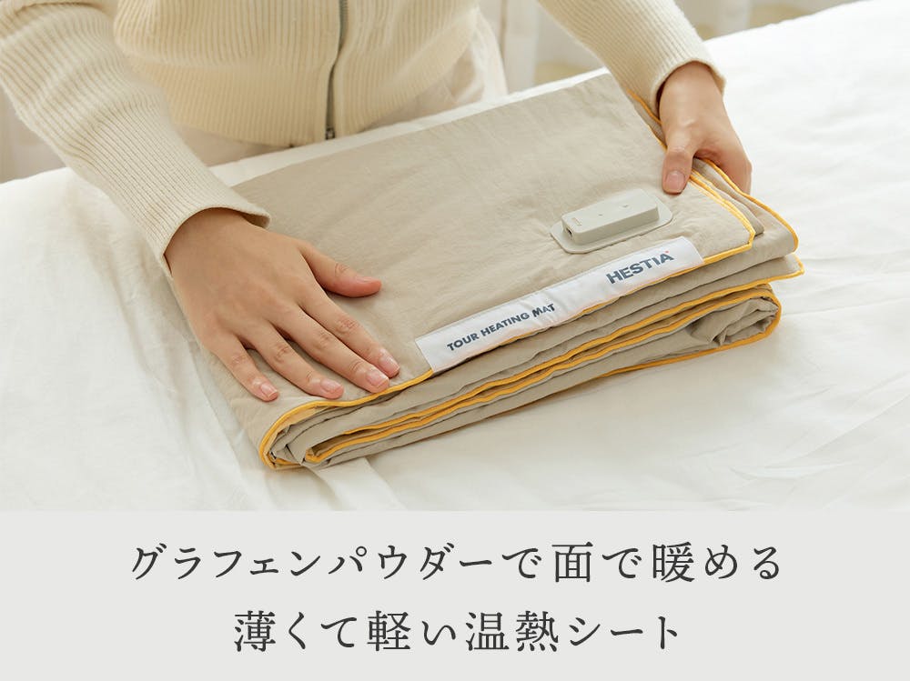 ブランケットのように羽織っても軽くて心地よく、寝具に敷いても寝具の性能に影響しない薄さで寝心地を損なうことがありません。