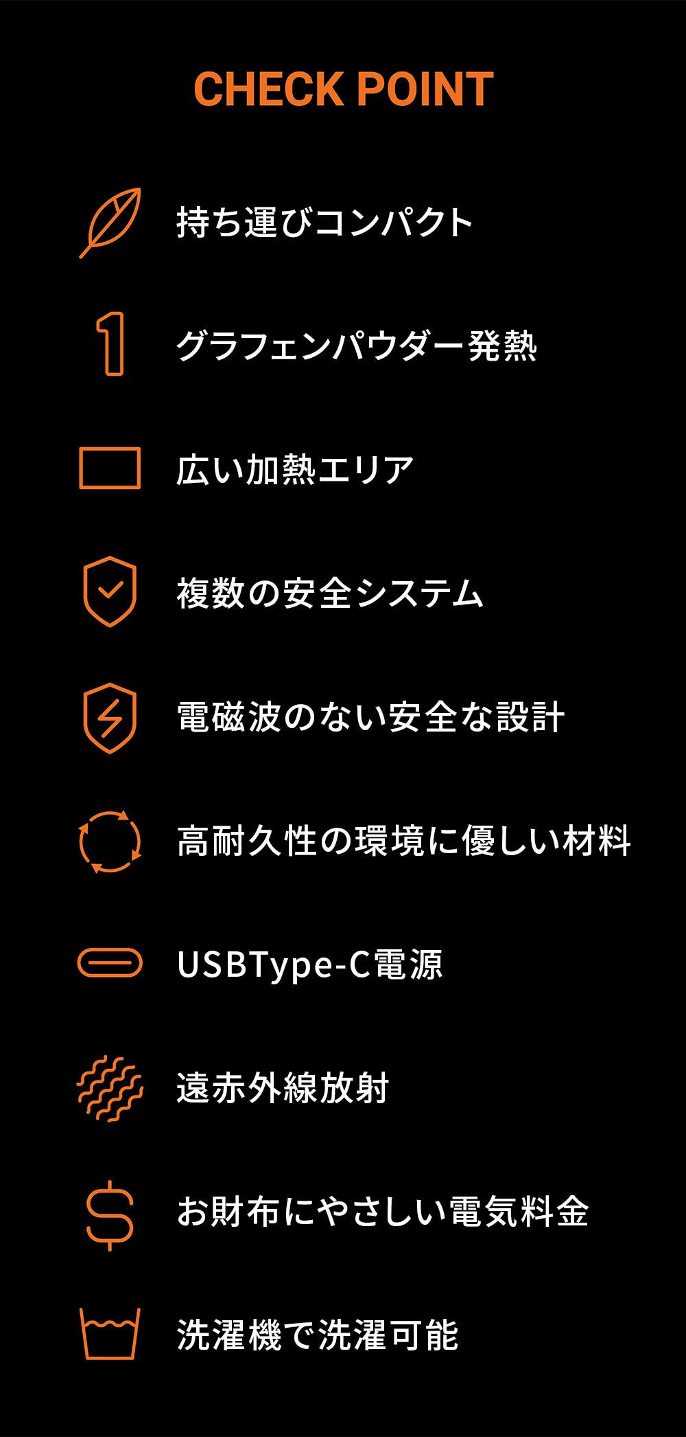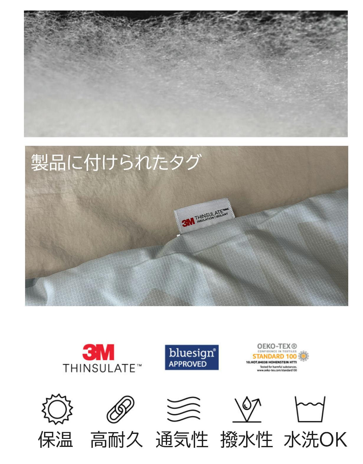 シート内部の中綿には3Mシンサレートの綿を使用しています。ダウンジャケット等に使用される綿で少量でも保温性を確保できる素材です。グラフェンで温めて電源をOFFにしても余熱と体温で十分暖かさを維持できます。
