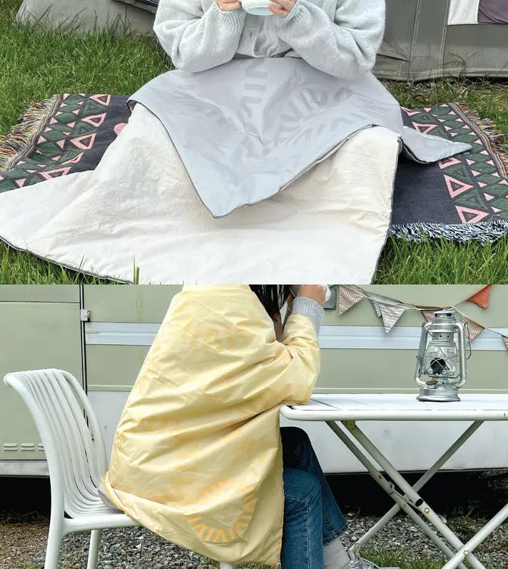 水分を弾く撥水性と空気を通過させる通気性の両方の特性をもつ素材を表、裏に使用して内部はコットンの空気層を作ることで保温を確保して、グラフェンパウダーによる発熱素材を内蔵しています。シートという名称にしておりますが、薄手のダウンジャケットのような扱いと製法になります。
