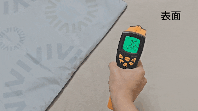 極薄で仕上げた温熱シートの温度効果は裏も表も両面同様な暖め効果があります。裏表を気にせずに使用できます。
