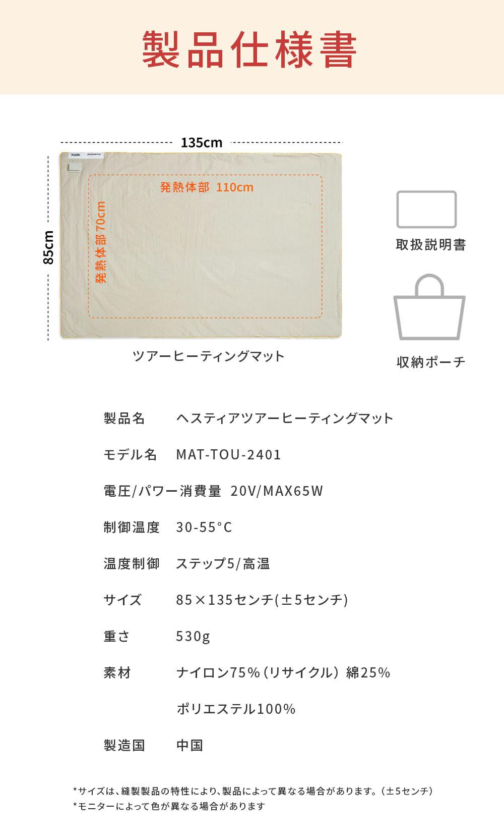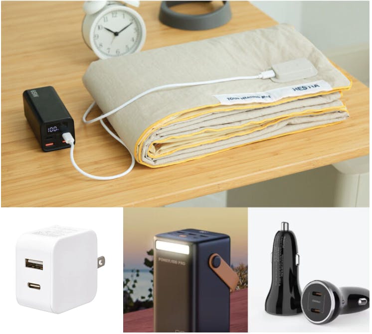 幅広い電力対応でACアダプターだけでなくモバイルバッテリーでも発熱するので旅行やキャンプ、外出時にも便利にお使いいただけます。