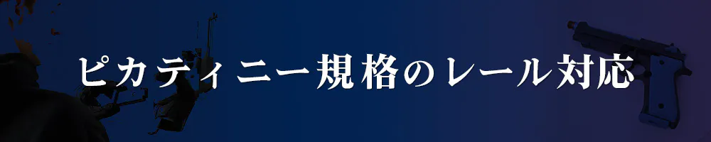 付属品以外にピカティニーレール規格のフラッシュライトやドットサイトなどのアクセサリーが搭載可能です。
