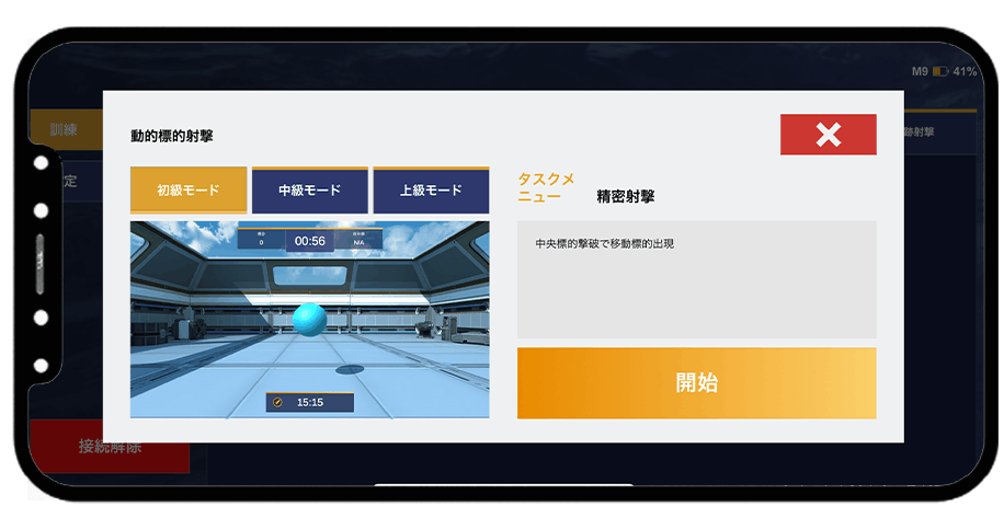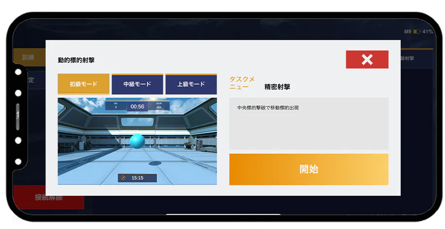 専用スマホホルダーを銃にセットして銃とスマホアプリを連動させます。