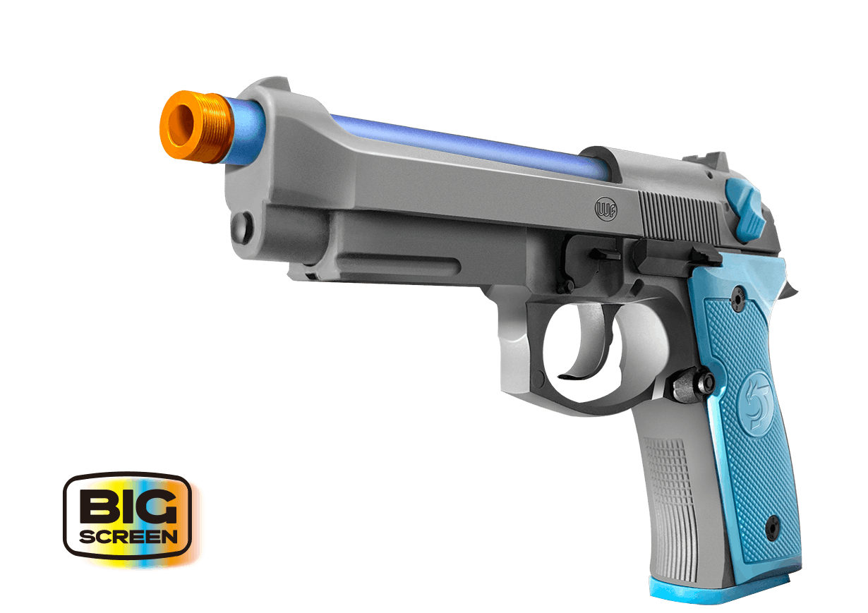 実在するハンドガンをモチーフに同様のサイズで再現したシューティングガン各国で販売する規制の都合でカラーリングは異なりますが、ゲームに関係のないパーツまでしっかり再現しています。