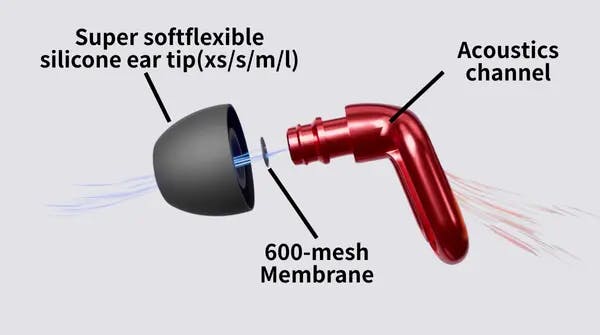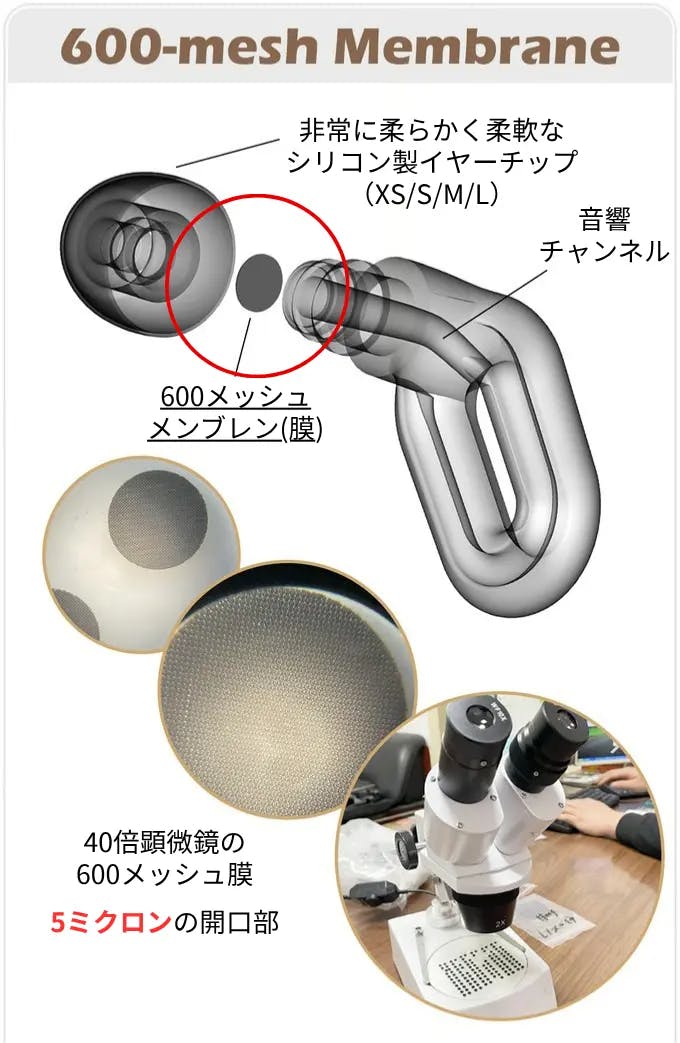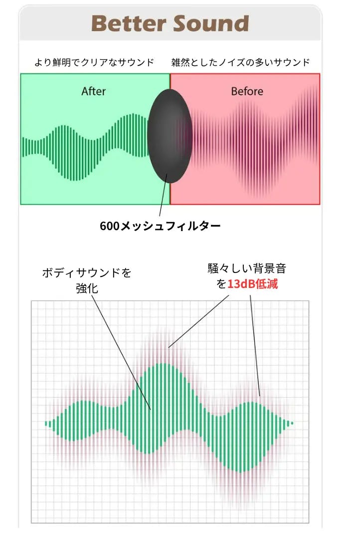 600メッシュのポリエステルメンブレンが最終フィルターとして機能し、粘性摩擦と音響インピーダンスを利用してノイズを低減しながら、低周波の明瞭性を維持します。