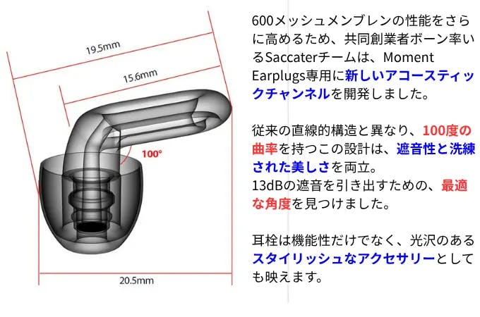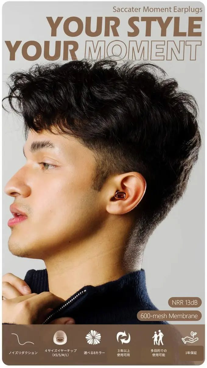 「Saccater Moment Earplugs」 は聴覚を保護しながら、音の明瞭度を高める設計です。