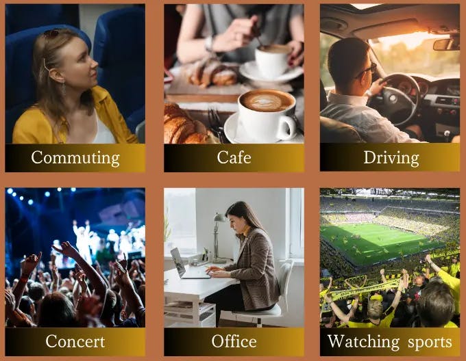 ・通勤、移動中・・・・・周囲の音を抑えて、自分だけの空間を