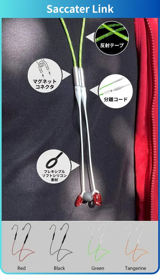 「Saccater Link」 と言う名のストラップコードは、マグネット留め具のデザインにより利便性が向上し、耳栓を保護して紛失を防ぎます。