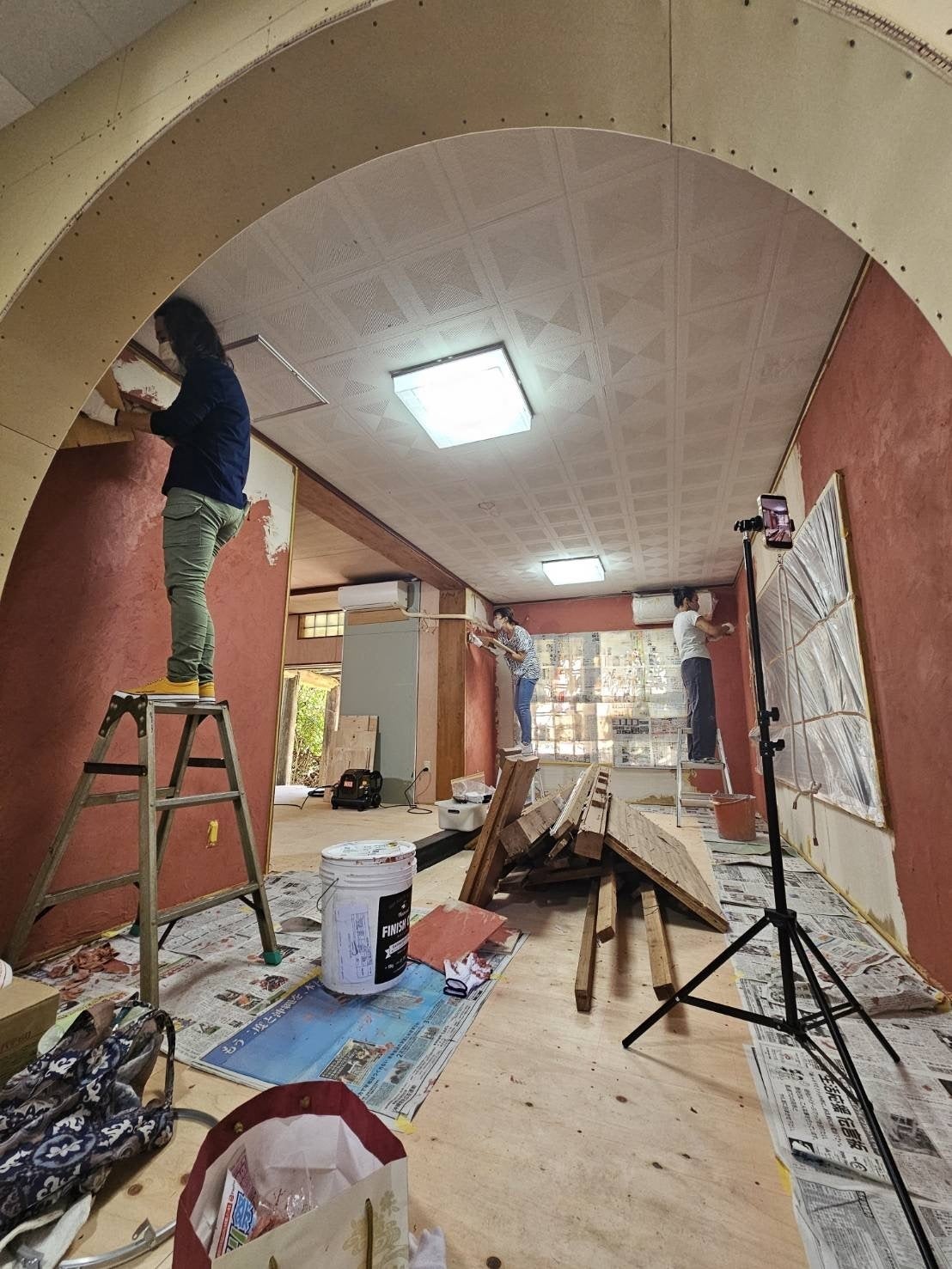 2026/01/20 23:42こちらは雑貨屋コーナー!ボランティアの皆さんのおかげで壁の塗装が完了しました!とっても綺麗に仕上がって満足です!漆喰を塗るのが初めてだったのですが、厚みにむらが出たりツノが立ったりするので敢えてワイルド?に模様をつけるようなイメージで塗るアドバイスを受けるととても楽しめました♪明日からはお風呂の改造頑張ります! もっと見る