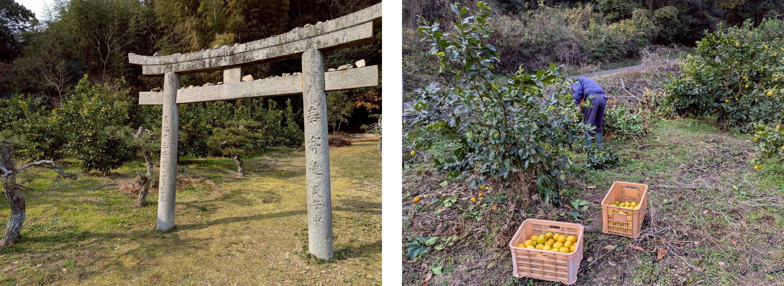 穏やかな時間が流れる今治の阿部農園。ひとつひとつ丁寧に手摘みしています。