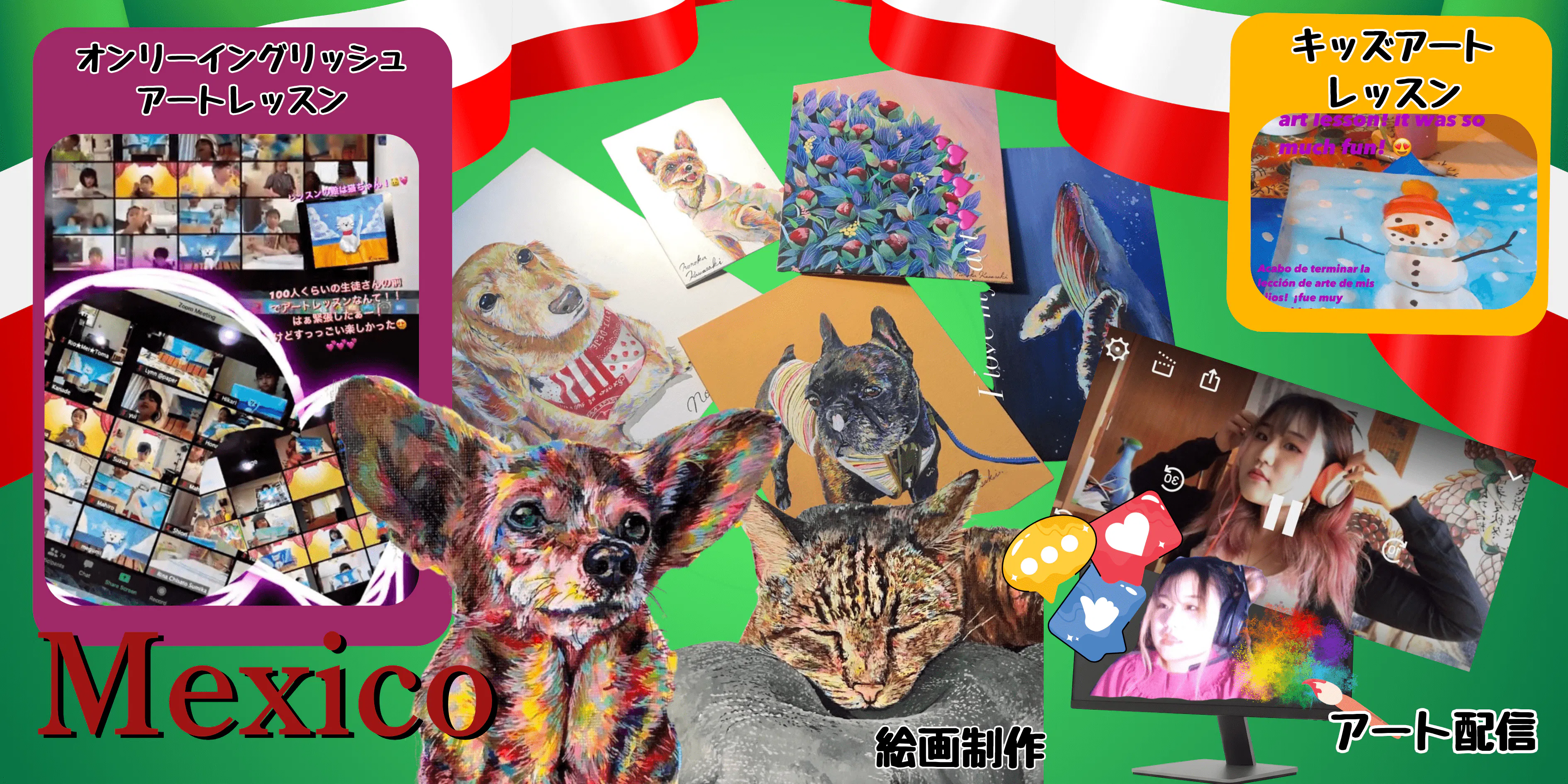 オンライン英会話講師として働きながら、子供向けのオンラインアートレッスンや、絵画制作ライブ配信にも挑戦しました。
