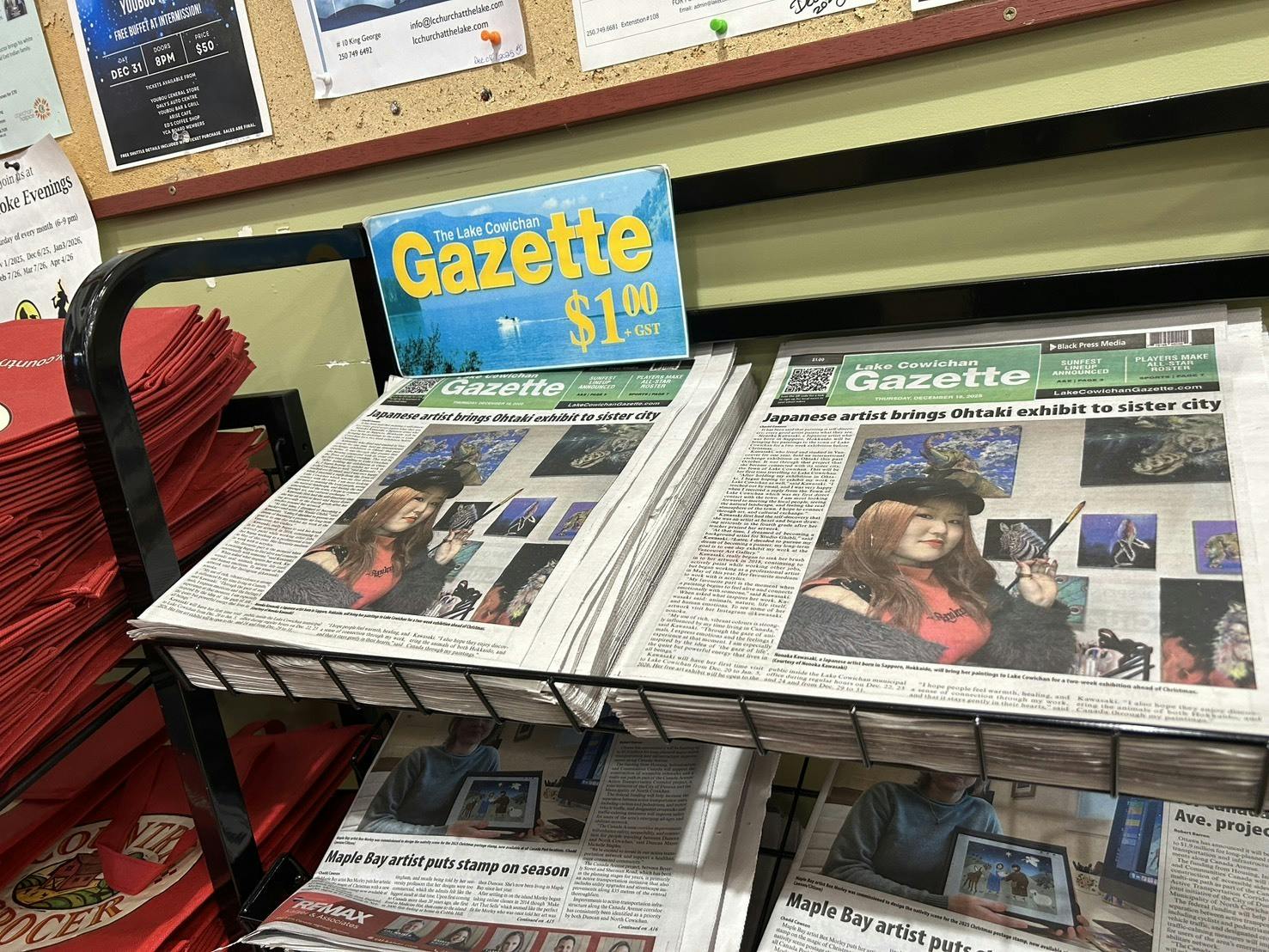 「Lake Cowichan Gazette」の表紙面に、私の作品と活動を紹介していただきました!
