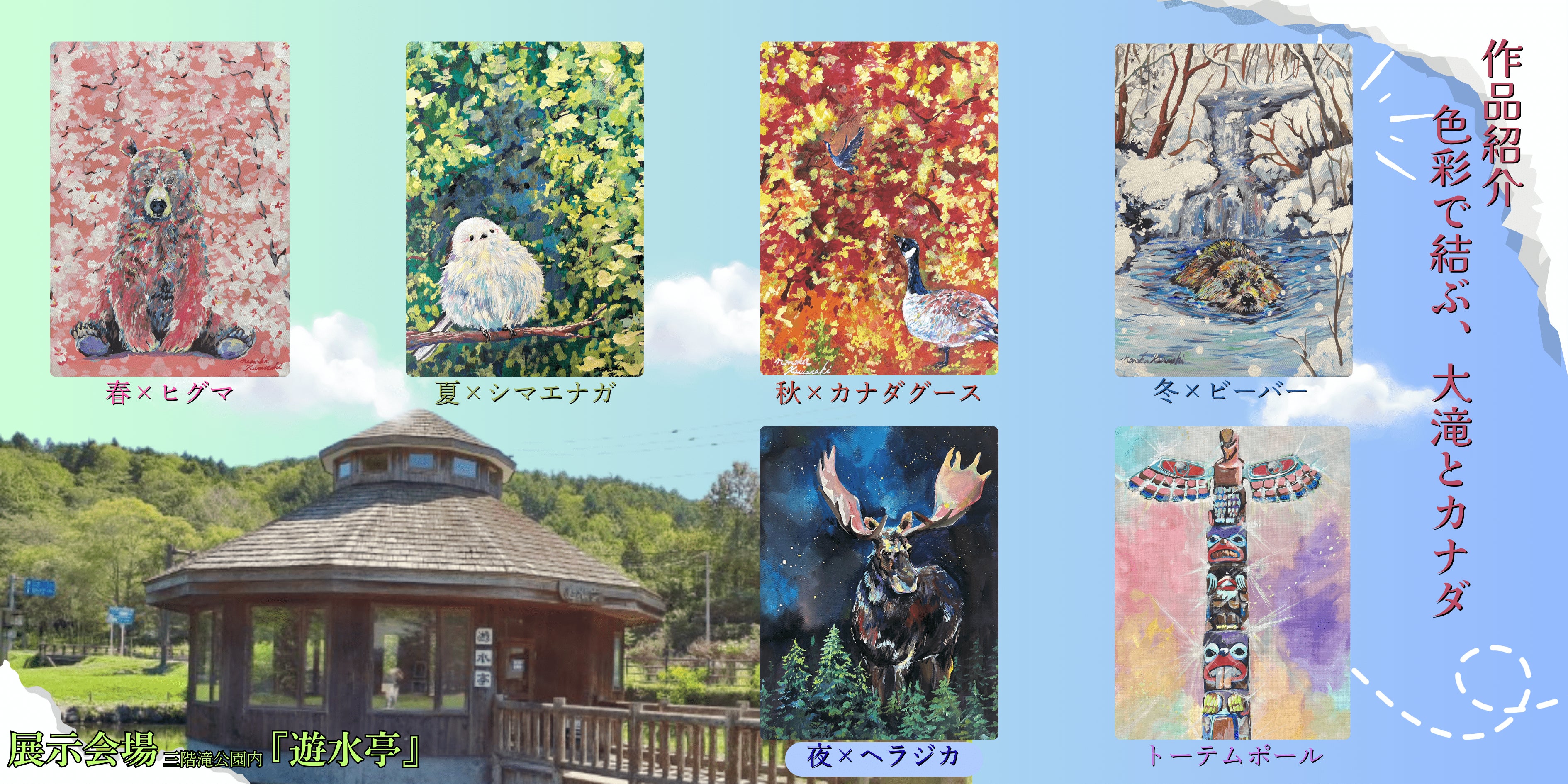 北海道とカナダに生きる動物たちと景色を、色彩豊かに描きました。