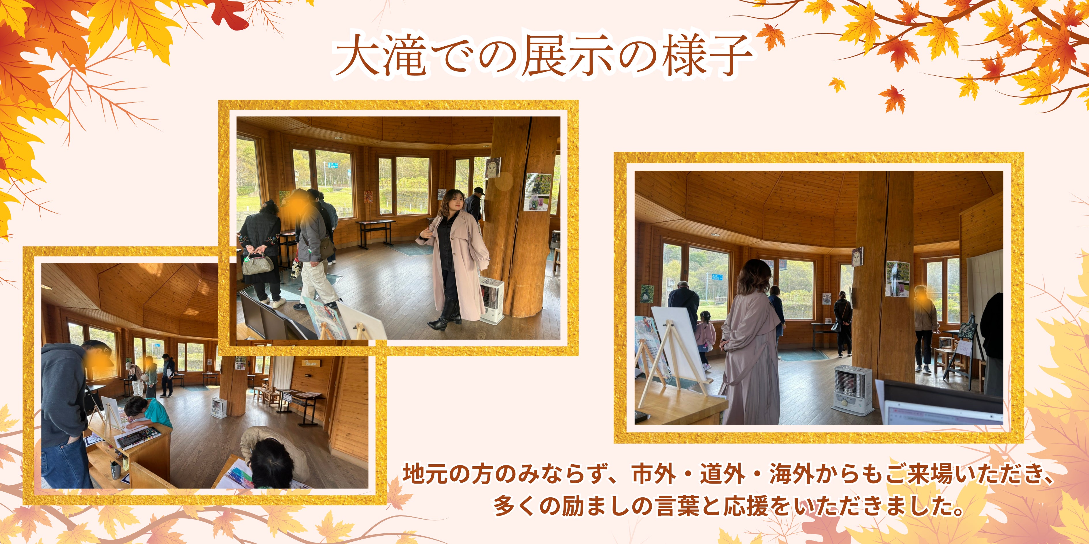 大滝での展示は、三階滝公園内『遊水亭』で開催され、3日間で150名以上のご来場がありました。