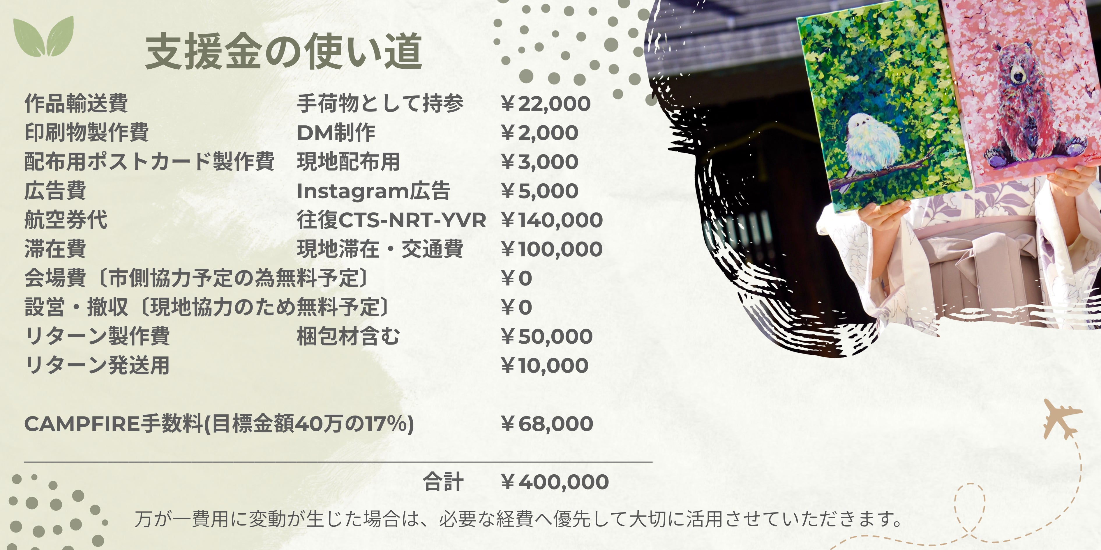 この度、カナダでの国際交流アート展を開催するため、クラウドファンディングを始めました。