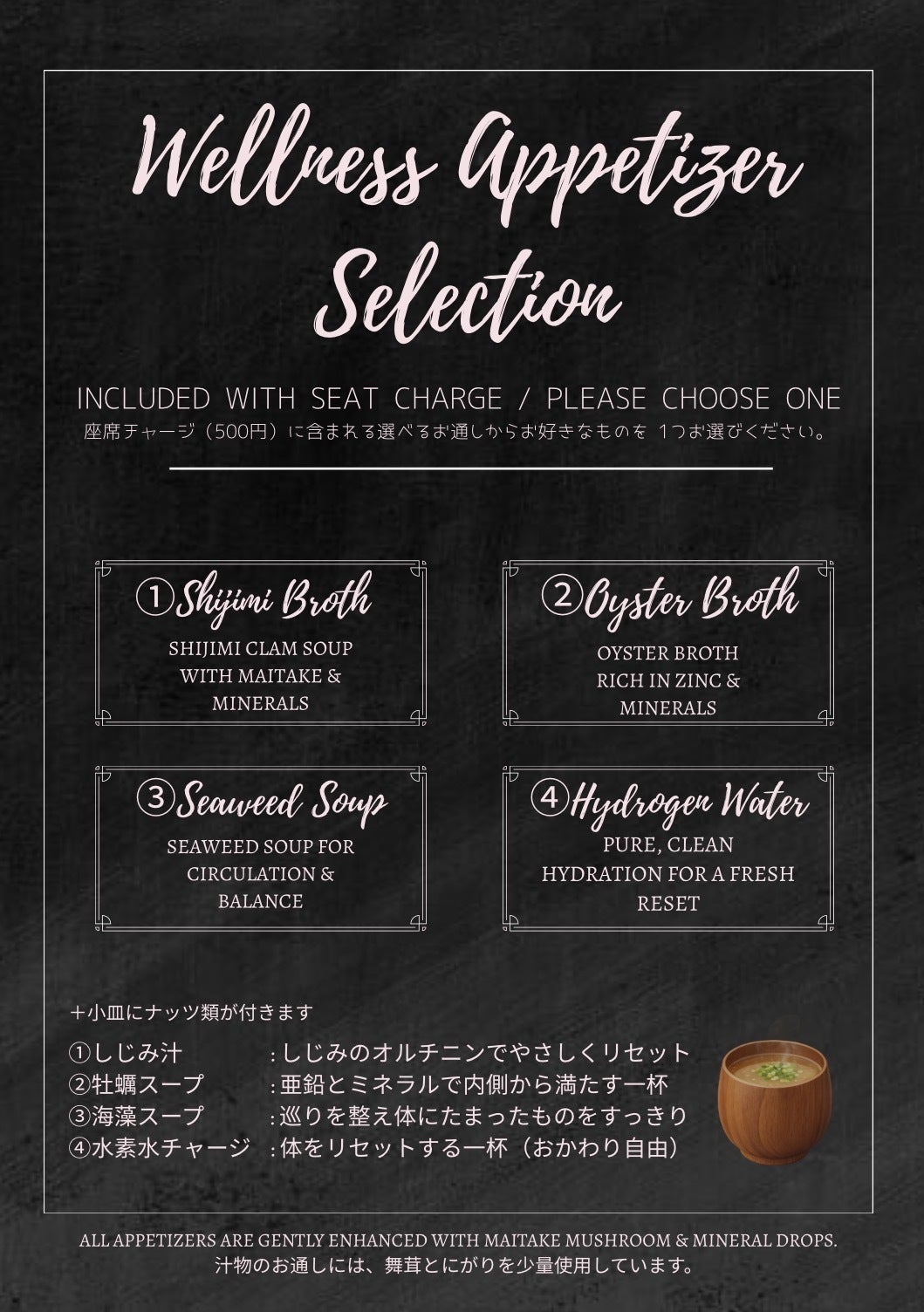 座席チャージ (お通し)1年間ご提供