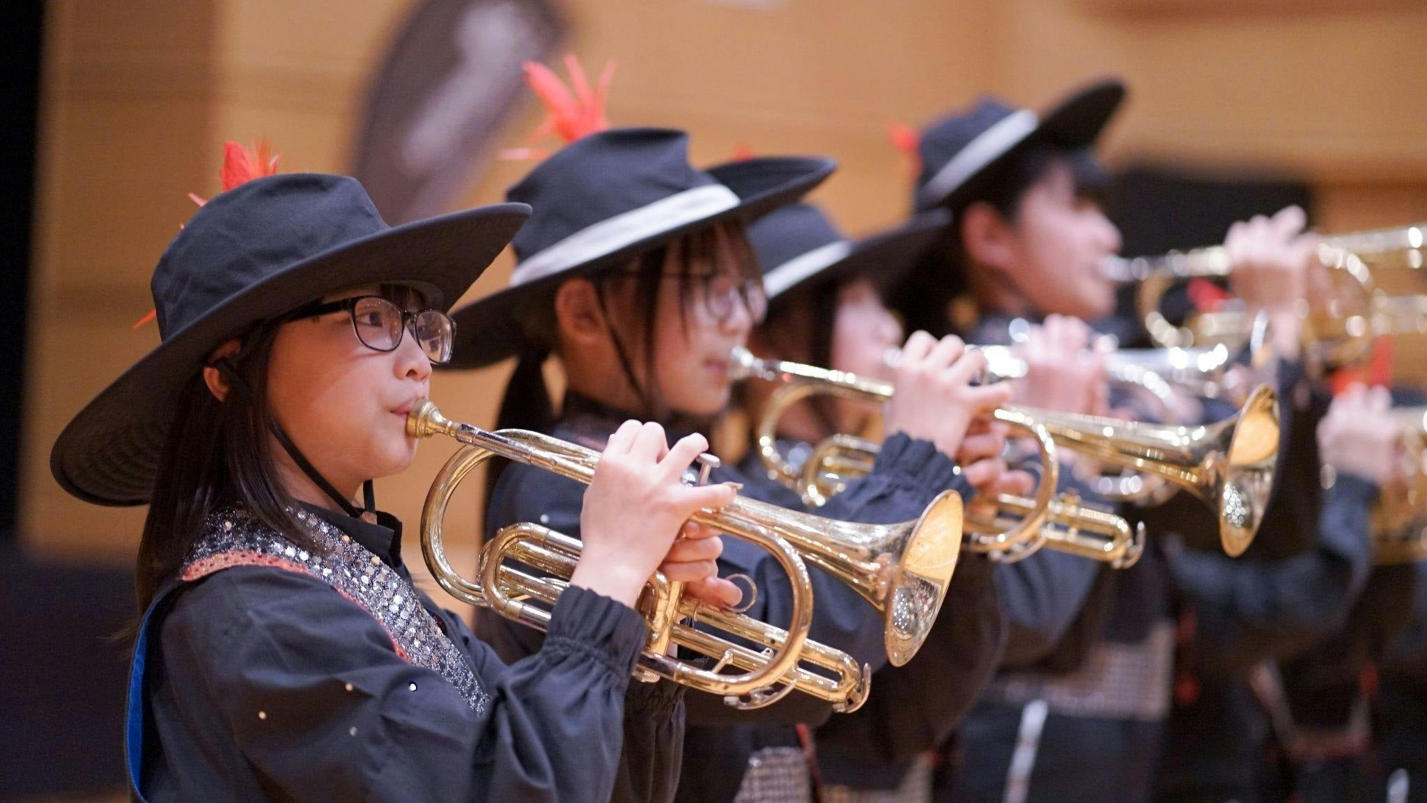 「マーチング」をご存知でしょうか?マーチングと聞くと、式典などでチッタカターと行進しながら演奏する行列を思い浮かべるかもしれませんね。実はパレードだけでなく、マーチングにはいろんな形式があります。マーチングは簡単にいうと「音楽と動きを融合させたパフォーマンス」。管楽器の迫力ある演奏や、思わず体が動いてしまう打楽器の演奏、旗などの手具を用いて音楽を視覚的に表現するカラーガードがひとつの音楽をつくりあげます。動きがあるので小さなお子さんから大人まで、音楽をやったことがない人も楽しめるのがマーチングの魅力でもあります。