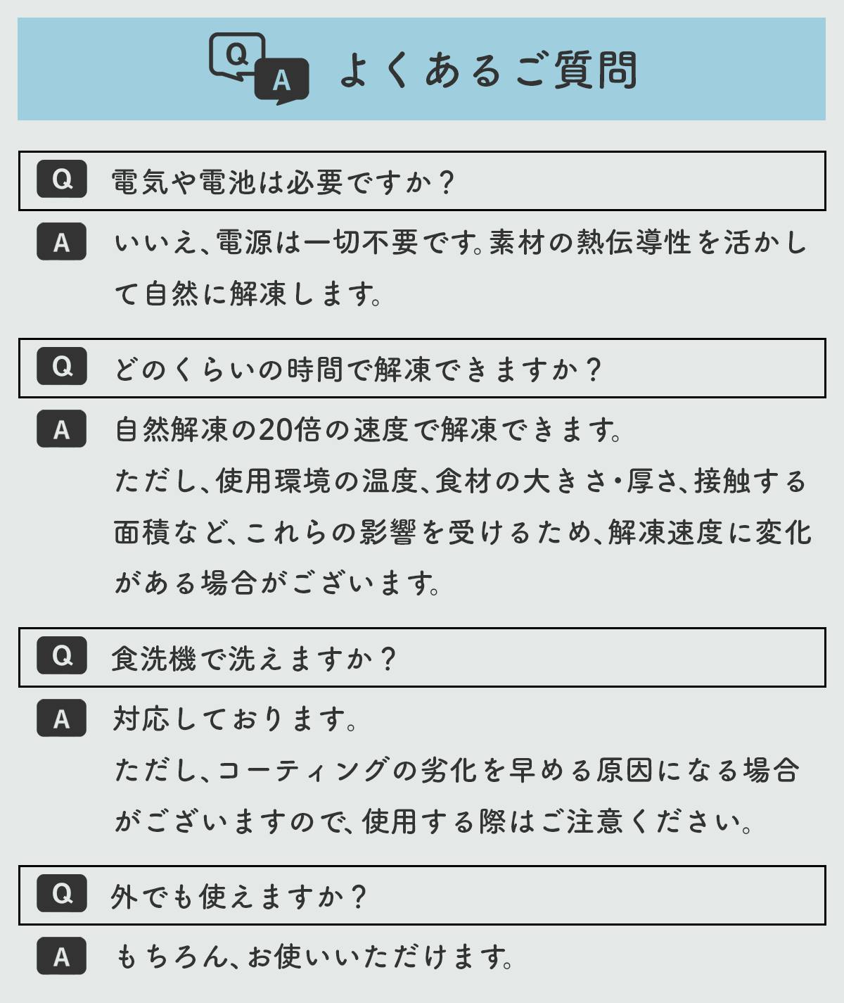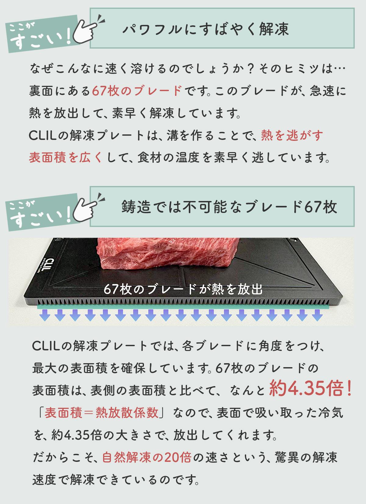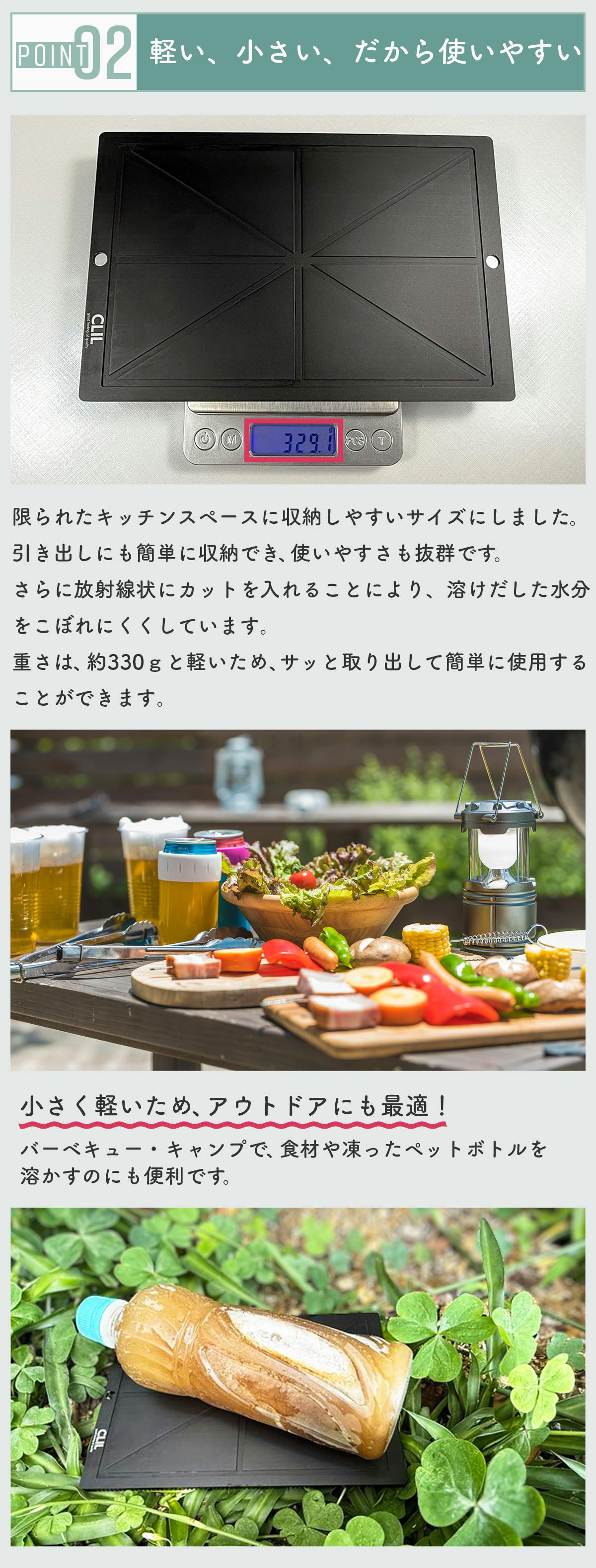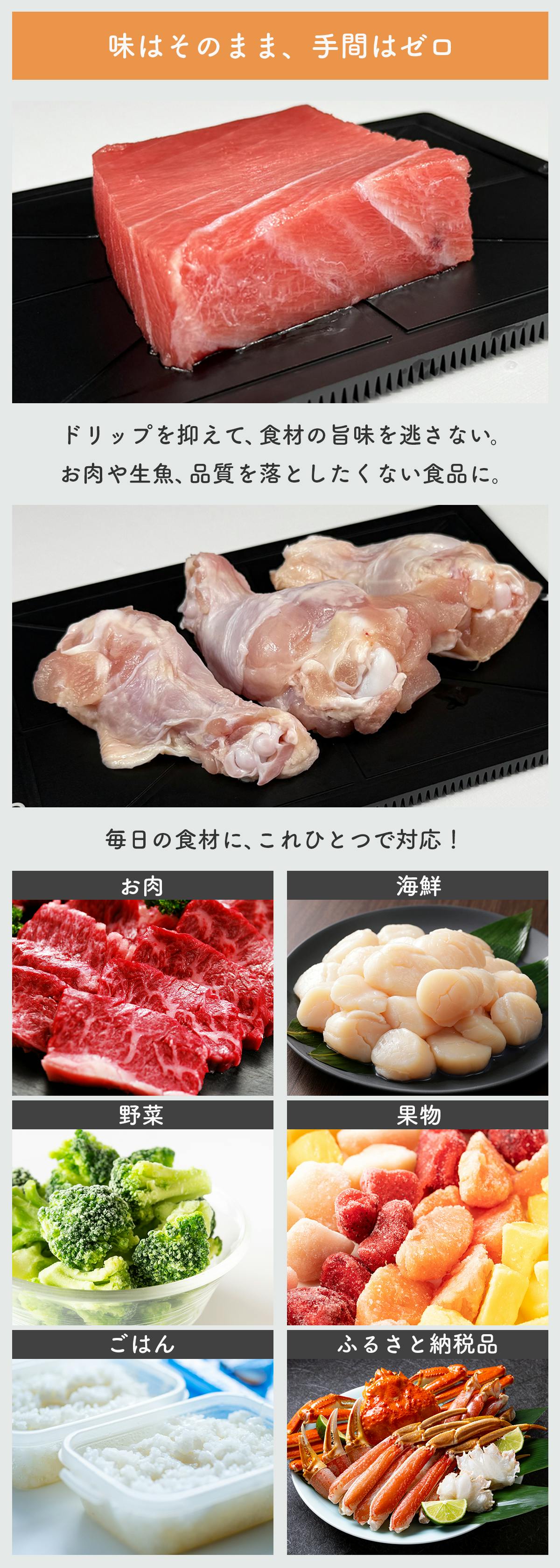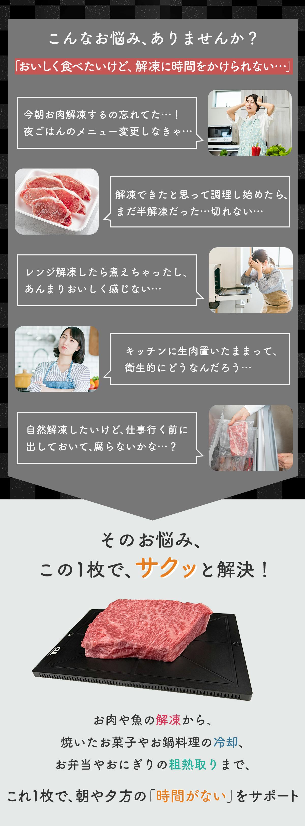 解凍の方法が悪くて、せっかくの食材の味を落してしまわぬよう、時間をかけずに自然解凍できるよう、独自の設計・技法により純アルミにケイ素コーティングを施した商品となります。