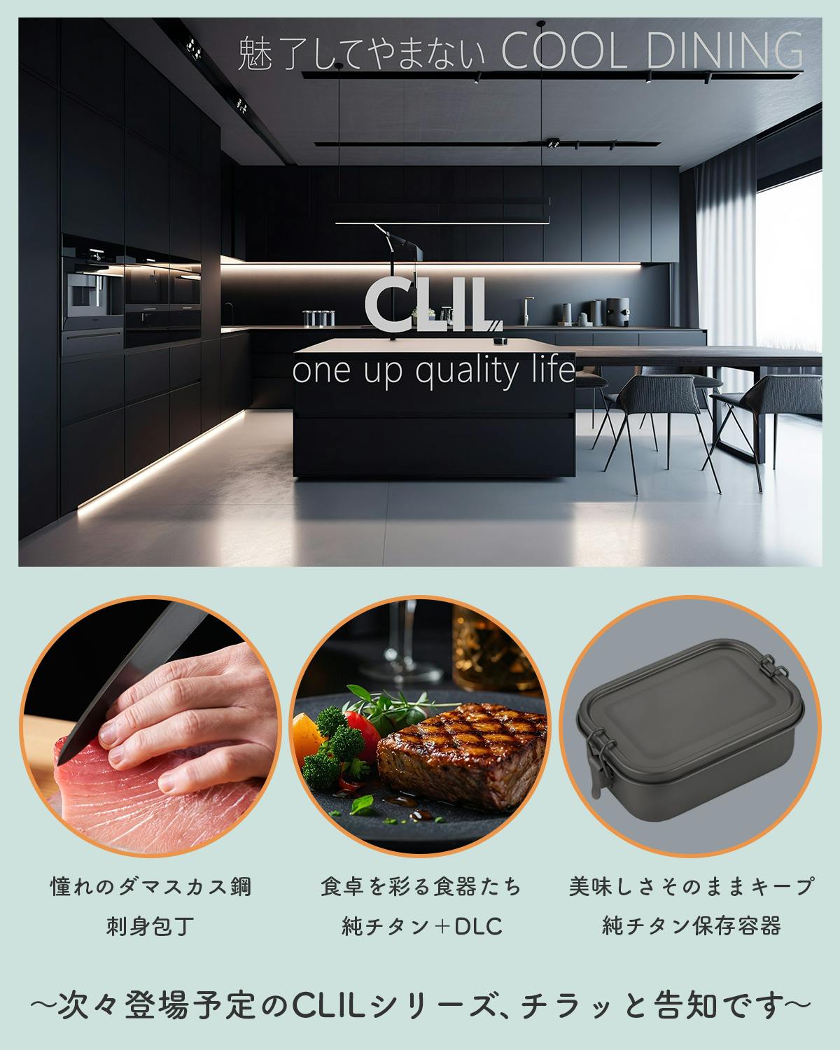 今回から新しく、COOL DINING「CLIL」として、ワクワクの止まらない、クールでスタイリッシュなキッチングッズを展開していきます。