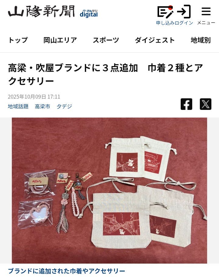 2025/12/05 14:01高梁市成羽町吹屋地区の魅力を発信するご当地ブランド「JAPAN RED 備中吹屋」の認定商品に、2種類の巾着とベンガラ染めのマクラメアクセサリーの計3点が追加された。 巾着は、高梁城南高(高梁市原田北町)の生徒らが製作。「ふきやねこ おさんぽ巾着」と「ふきやねこ おさんぽショルダーバッグ巾着」の2種類で、ベンガラ地部分に吹屋の町並みやオリジナルキャラクターのネコを描いた。 アクセサリーは、社会福祉法人めやす箱の就労継続支援B型事業所みのり(倉敷市西阿知町西原)が手がけたストラップやキーホルダー。ベンガラ顔料でひもを染色して編み上げた。 ブランドは2023年創設。認定商品は高梁市日本遺産推進協議会が選定しており、認定を受けるとブランドのロゴマークが使用できるようになるほか、財政的な支援なども得られる。 これまでにビールやベンガラ染め体験などが認定されており、今回で10商品・サービスとなった。 (小川正貴)Web記事引用しております。 もっと見る