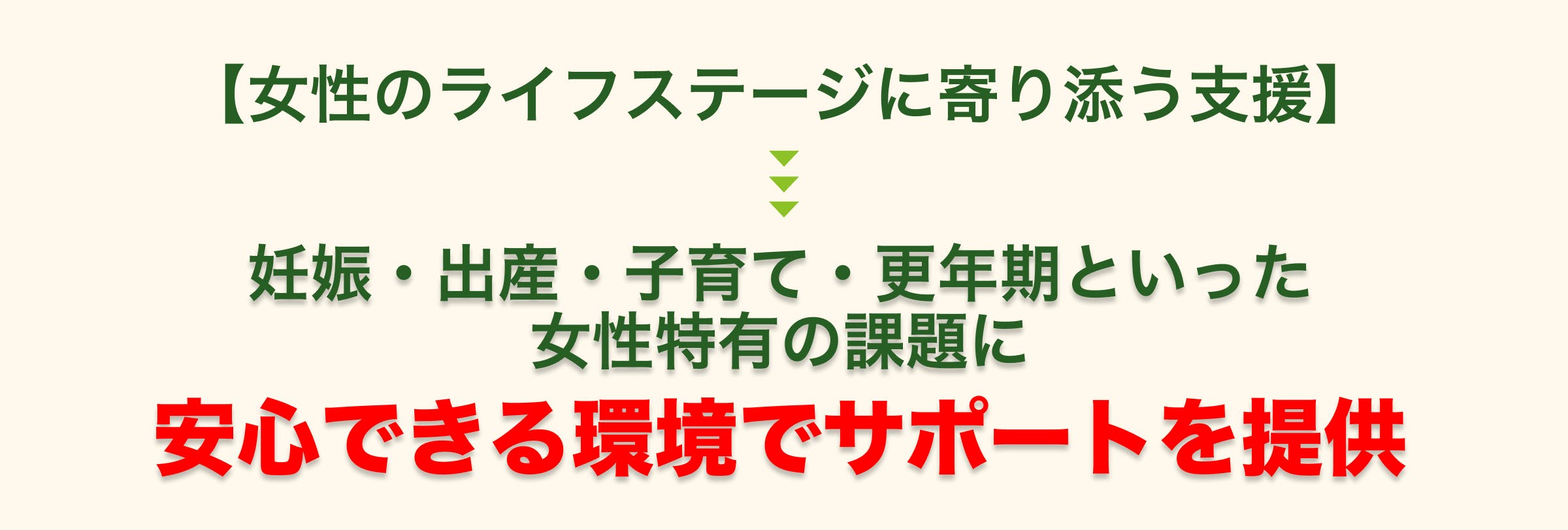妊娠・出産・子育て・更年期といった女性特有の課題に、安心できる環境でサポートを提供いたします。