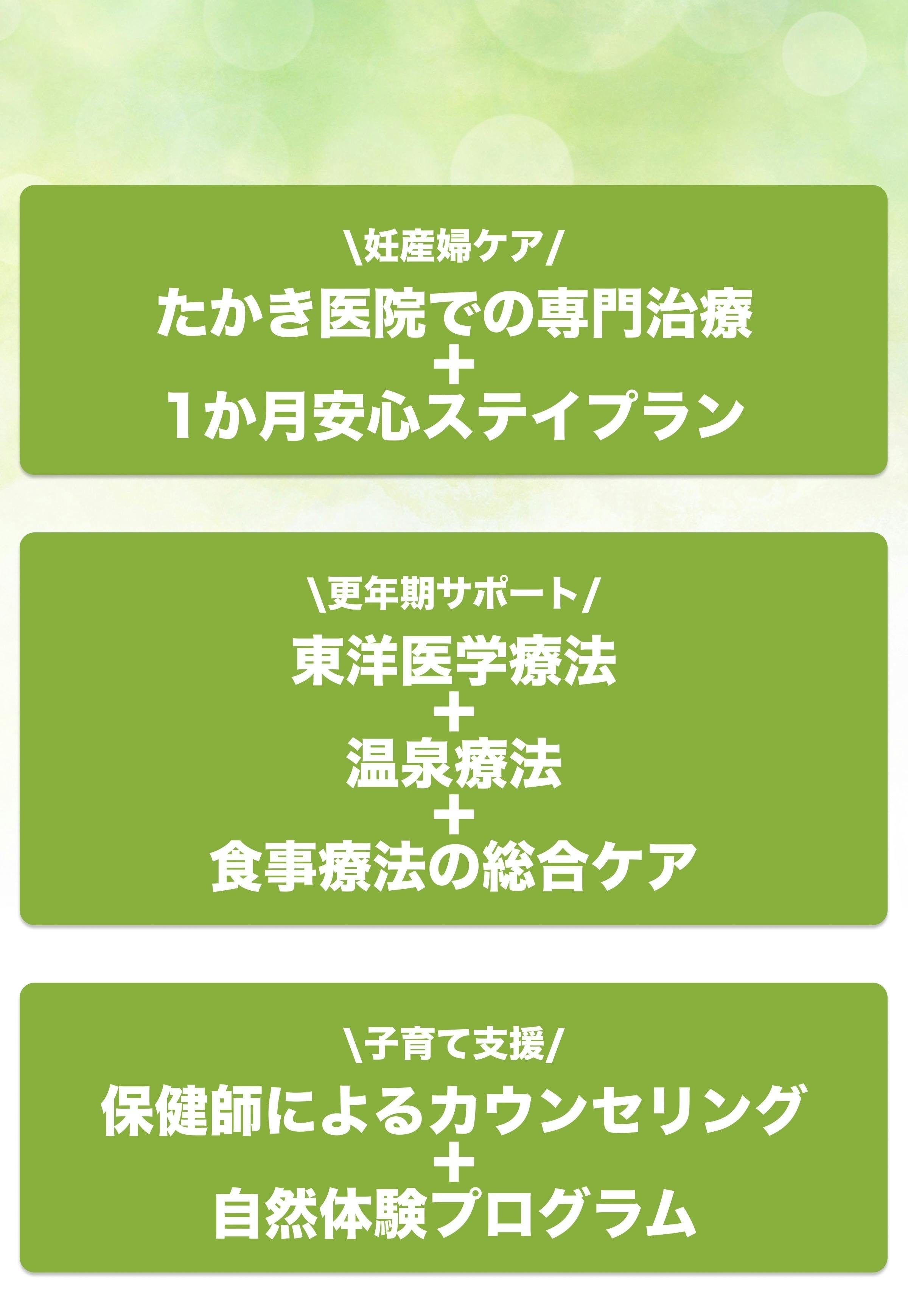 ・妊産婦ケア:たかき医院での専門治療+1か月安心ステイプラン