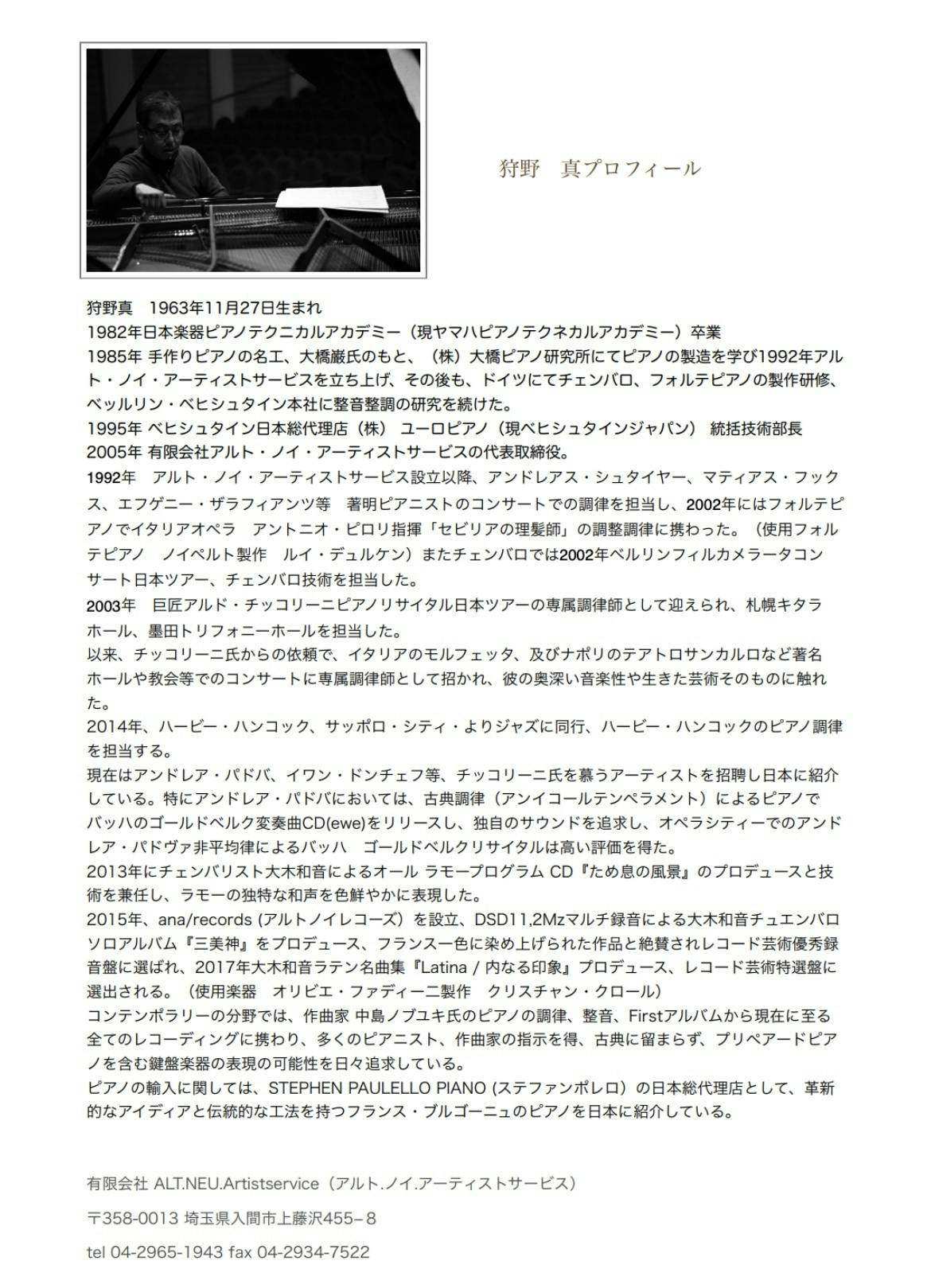 2026年4月18日(土)夕方、柏崎市アルフォーレにてチェンバリスト大木和音さんによるコンサート開催が決定。プロデューサーは世界的に活躍するホールエンジニアの狩野真さんです。