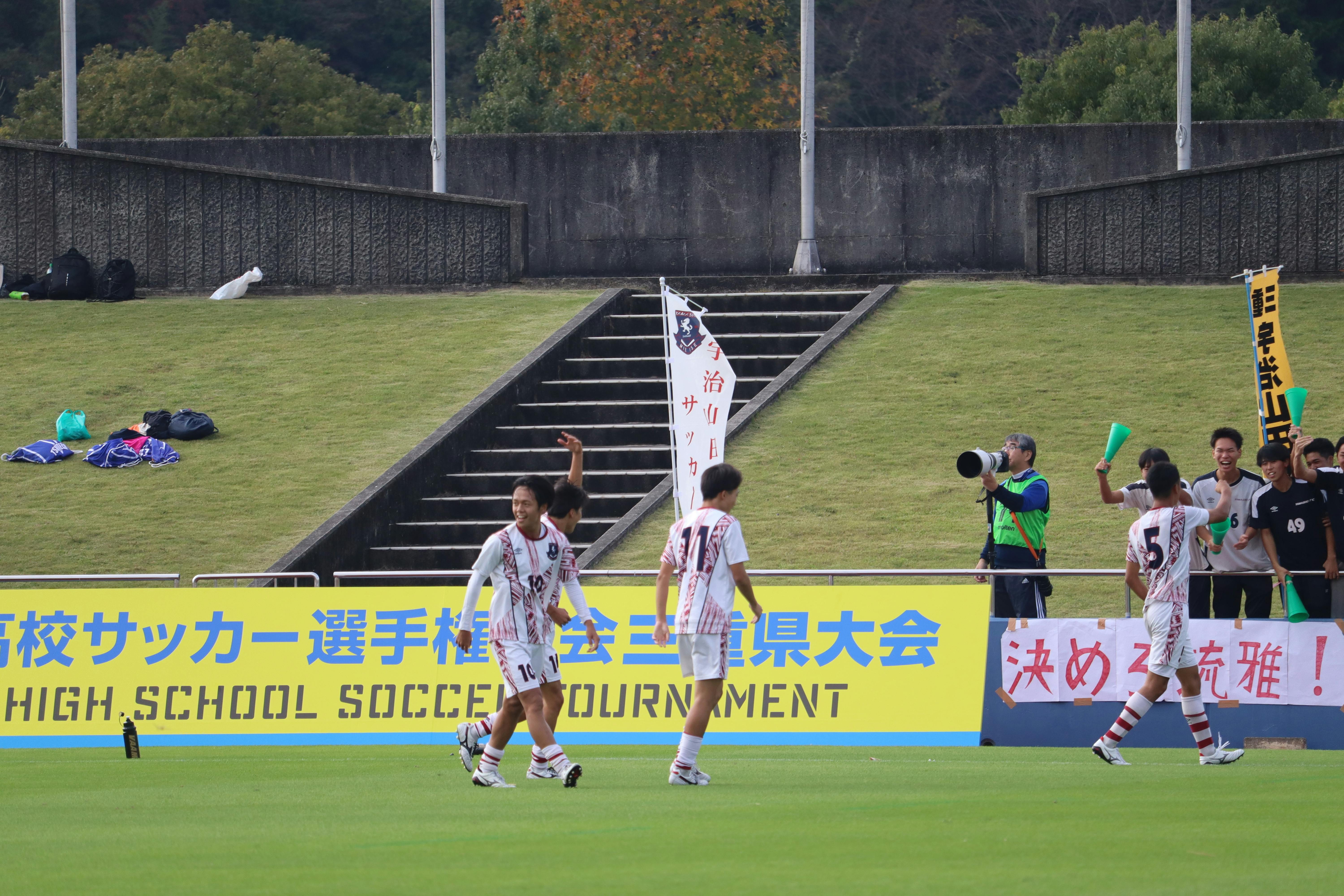 私たち宇治山田商業高校サッカー部は、高校サッカー選手権三重県大会で11年ぶりの優勝を果たし、念願の全国大会への切符を手にすることができました。ここまでの道のりは決して平坦ではなく、これまで悔しい思いをしながらも努力を積み重ねてきた選手たち、そして長い年月にわたりチームを支え続けてくださった地域の皆さま、OB・OGの方々の存在があってこその結果です。私たちはその“想いのバトン”を胸に、全国という舞台で堂々と戦いたいと考えています。