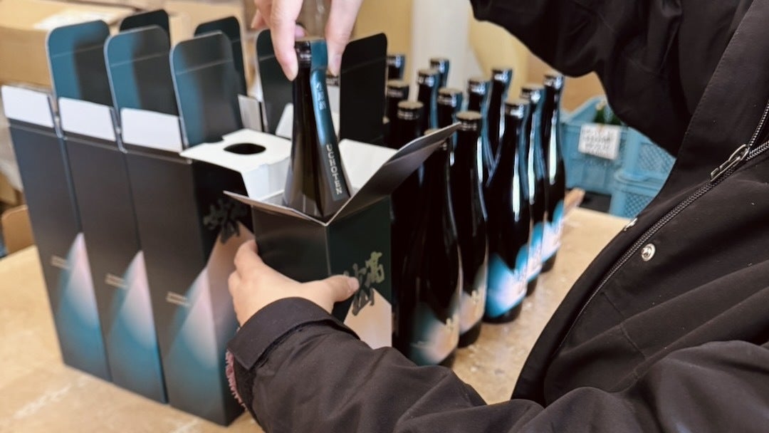 蔵の中で、一本一本丁寧に瓶詰めし、