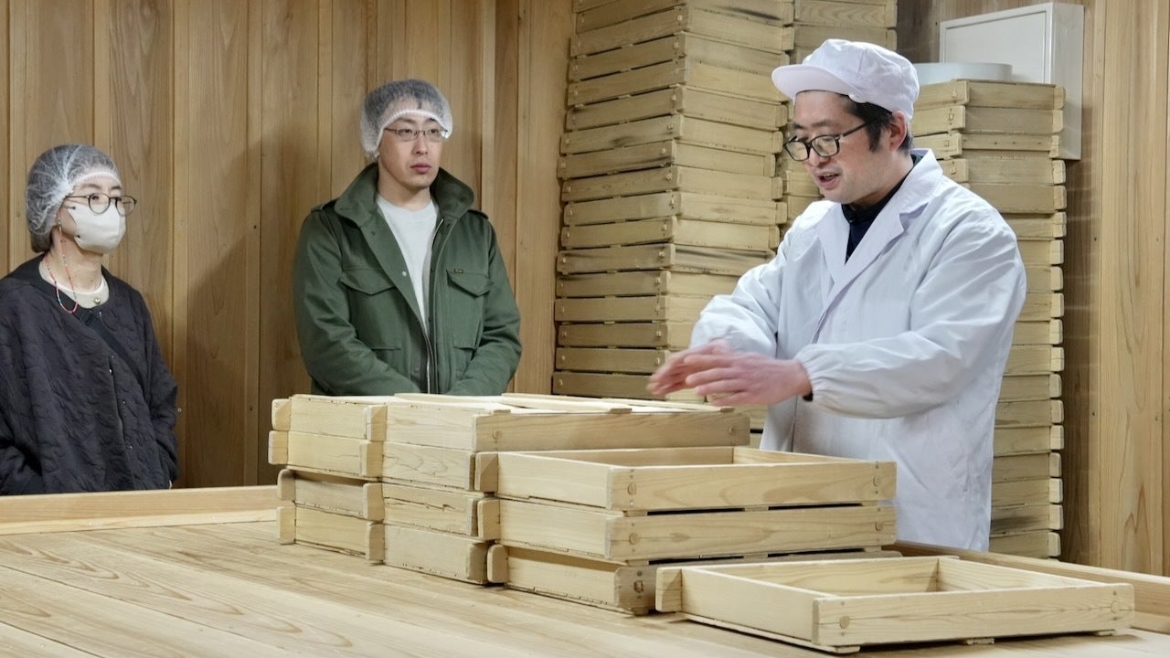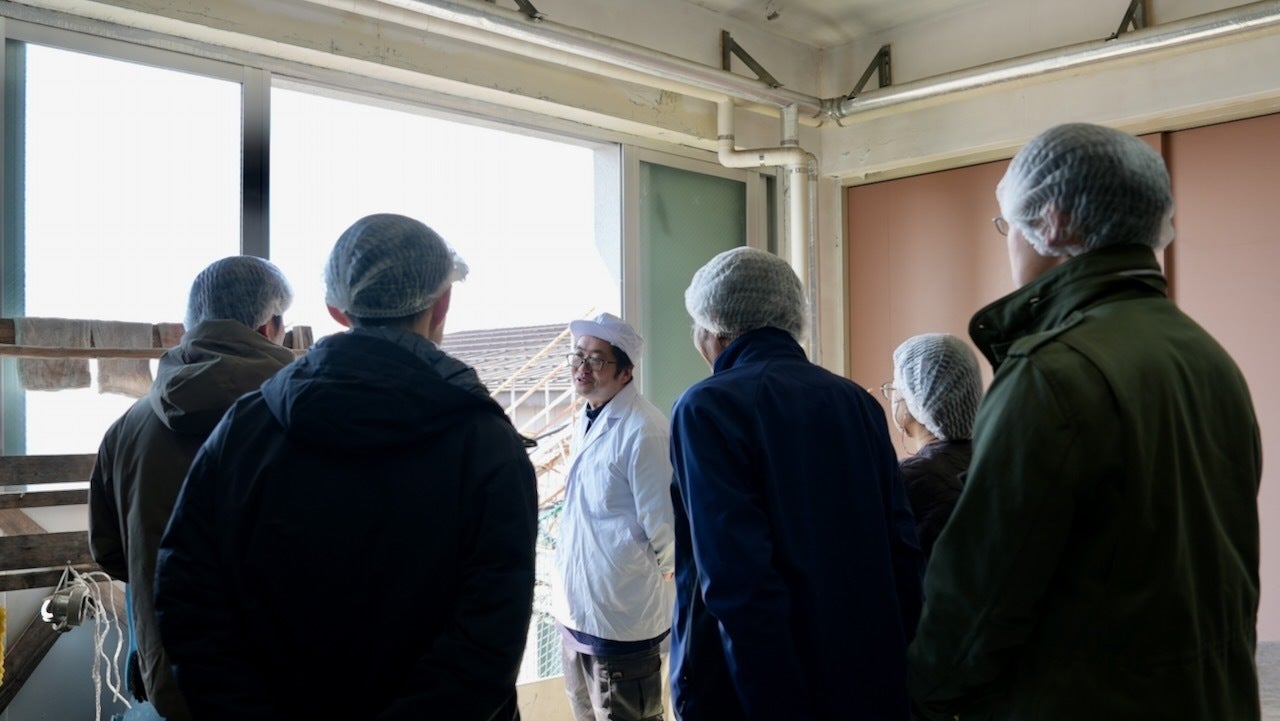 麹室では、一般酒と高級酒の麹の作り方の違いや、先代の杜氏が得意としていた蓋麹法の特徴、そして今年から使い始めた新しい箱麹法についてなど、専門的な話もたくさん出ました。