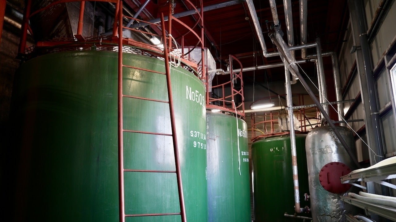 このタンクを横から見ると、こんな感じ。身長を裕に超える大きさのタンクがたくさん並んでいます。