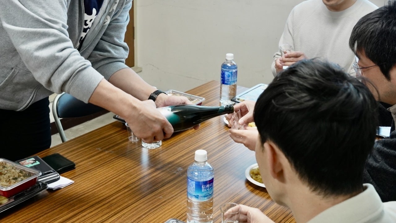 杜氏をはじめとした蔵人と、各地から集まってくださった参加者のみなさん。最初はちょっとおとなしい雰囲気でのスタートでしたが、お酒も入って会話がどんどんと弾みます。