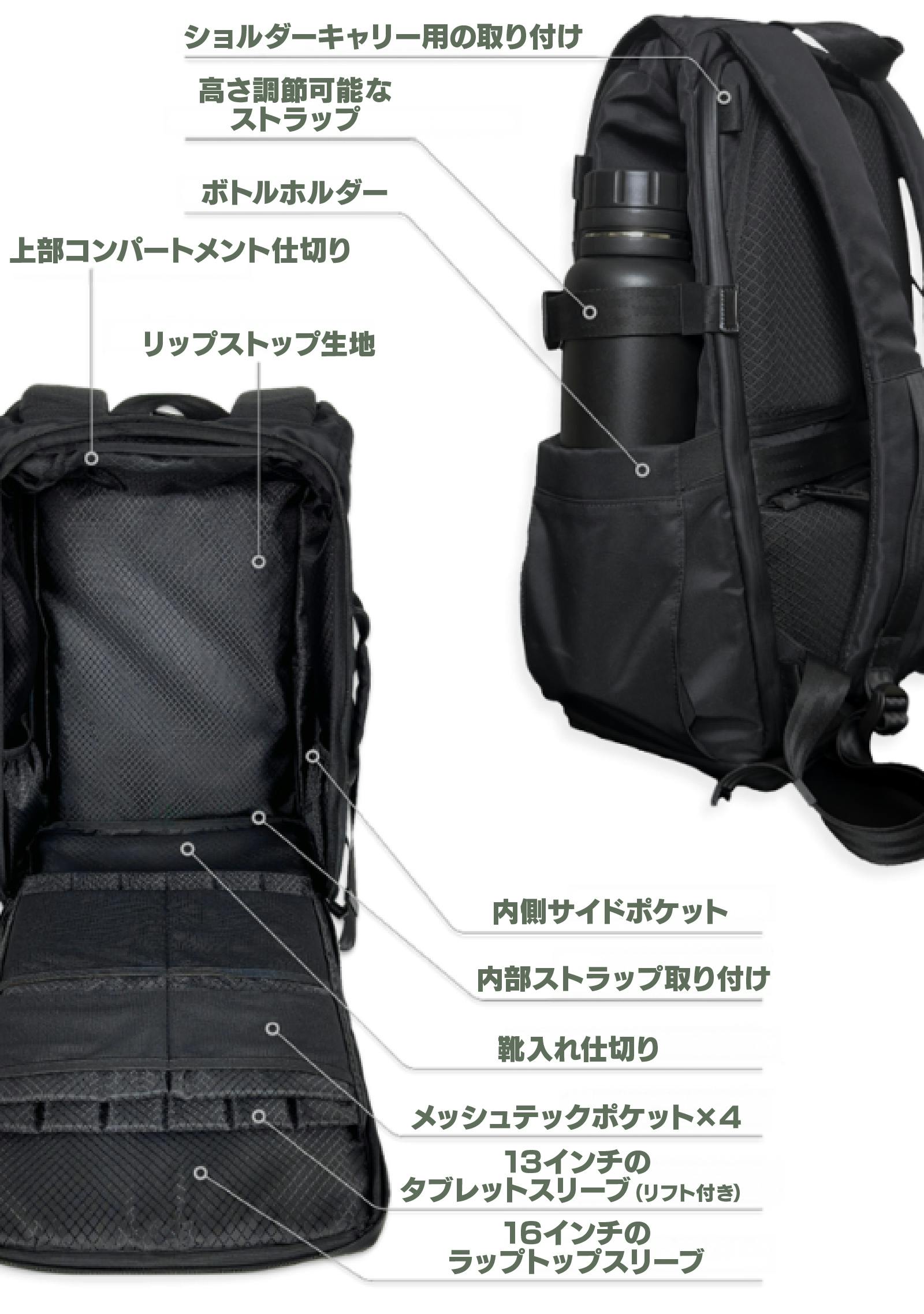 もちろん耐久性の高いタフな素材を使い、背負いやすさにもこだわった人間工学設計で使いやすさも徹底的にこだわっています。