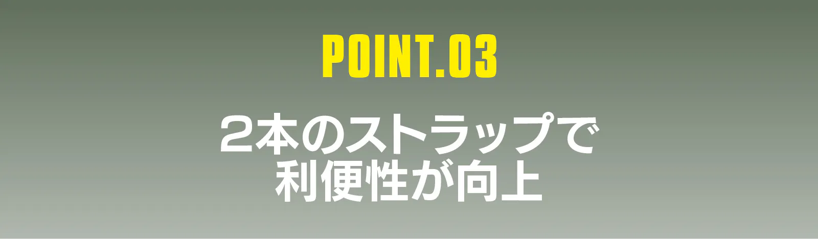 付属の2本のストラップを使うことでバッグとしての利便性がさらに向上。