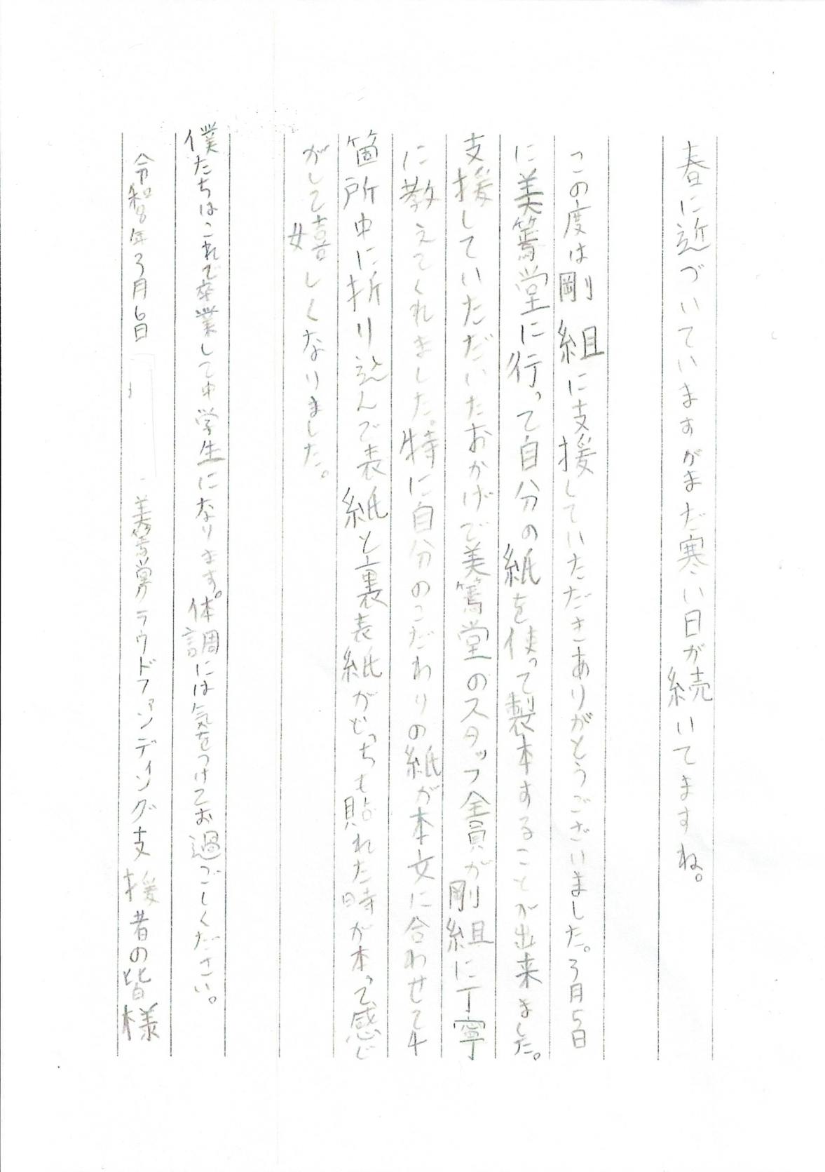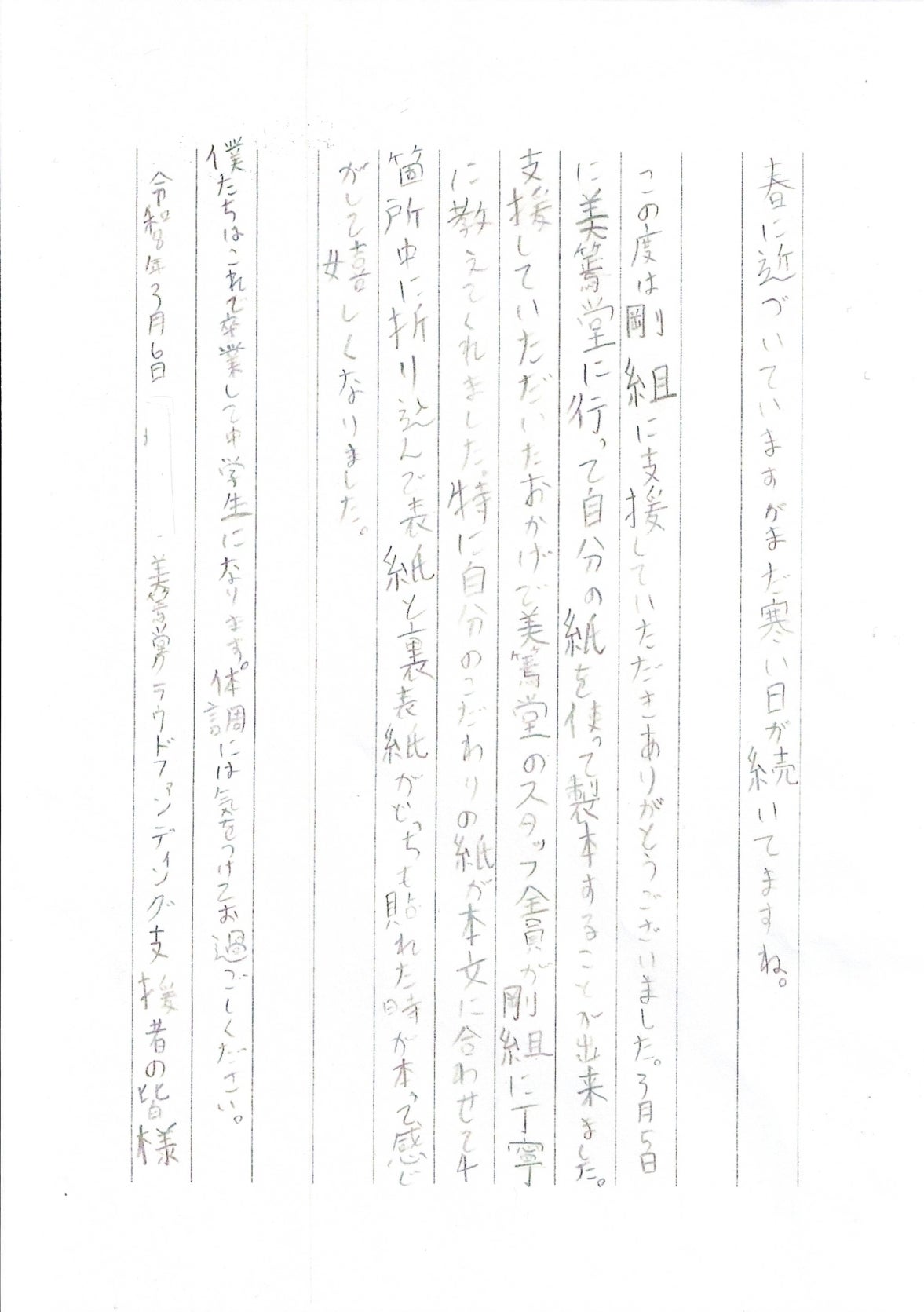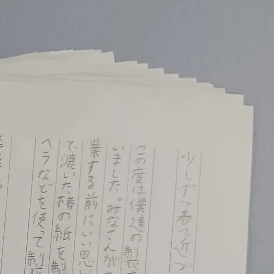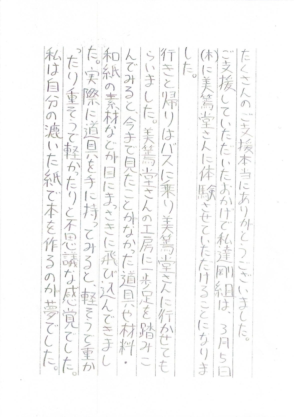 そしてみな中学生になるのですね。小学生の最後の時に、製本を体験してもらい、こちらが感動をもらいました。