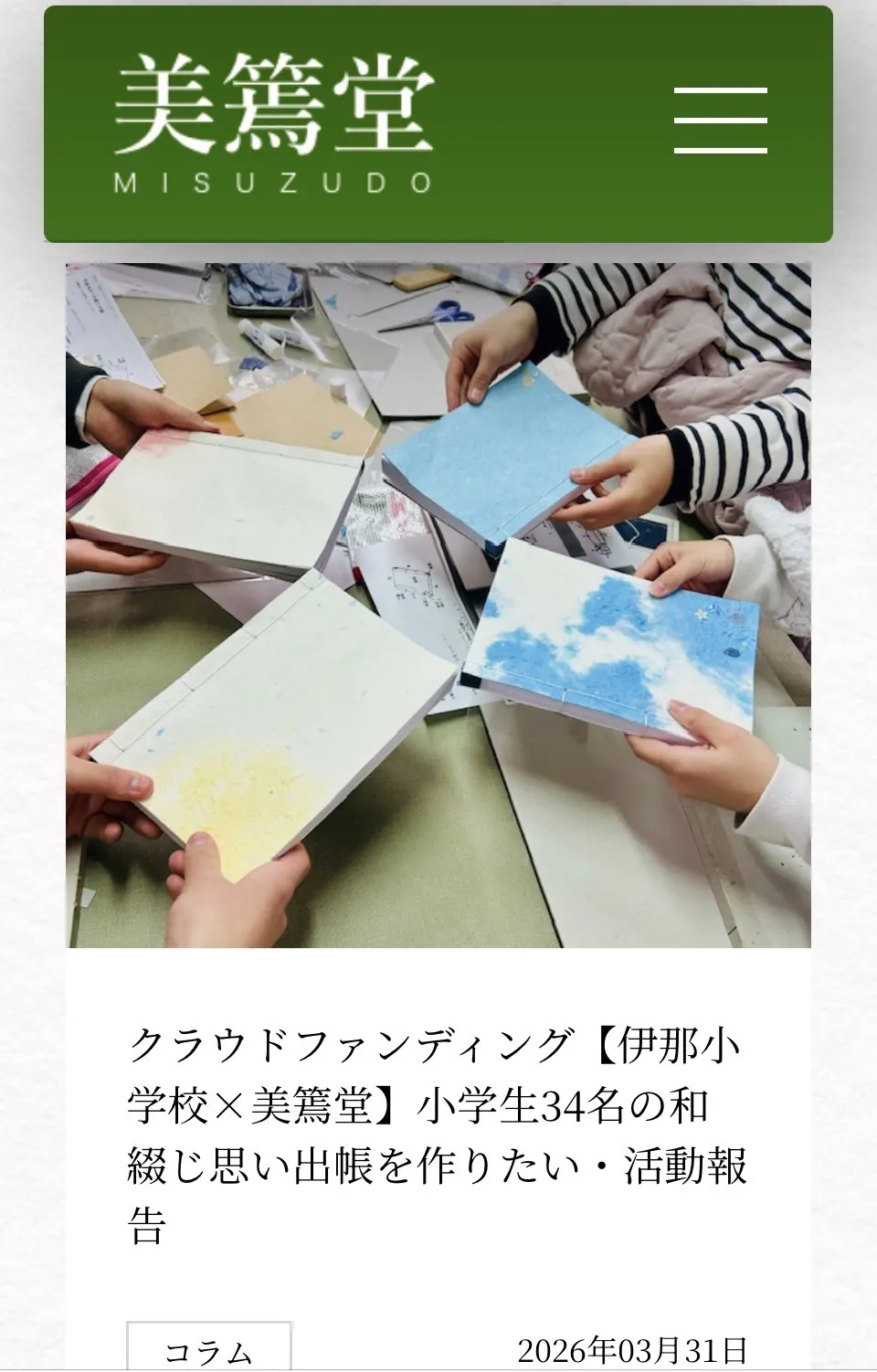 こちらにもご支援くださいましたお名前もしくはご希望のペンネームを記載させていただきます。(無記名ご希望の方ははずしています。)これから書面でのお礼状を作成し、返礼品とともにお送りします。オンライン上に掲載したもので、変更を希望される方ありましたら、4月10日までにご連絡いただけますか?オンライン上のものはすぐに修正いたします。お返事ない方はそのまま紙面に掲載させてください。美篶堂HPにはバナーにURLリンクも貼りました。ご確認お願いします!