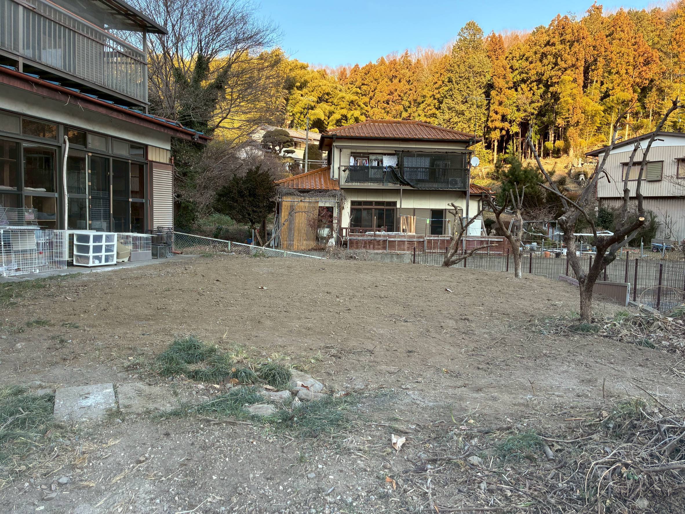 1月25日、荒れ果てた100坪の土地が、きれいな庭として整備されました。すっきりとした庭になりました。対面のお宅は、天沼川という小川を挟んでいます。