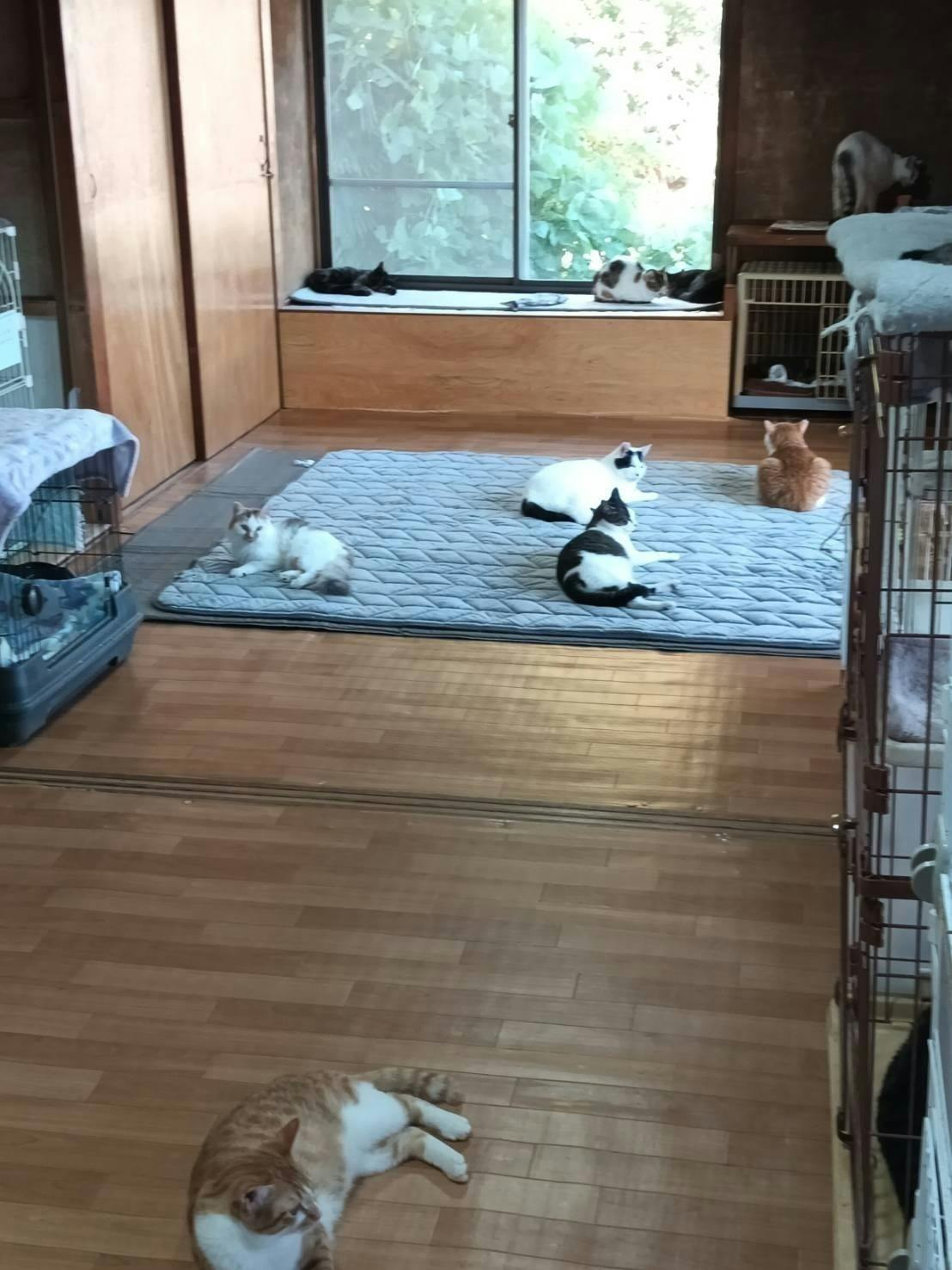 家屋一階2 0畳の大広間の改築が終わり猫17匹を既に受け入れさせて頂きました。