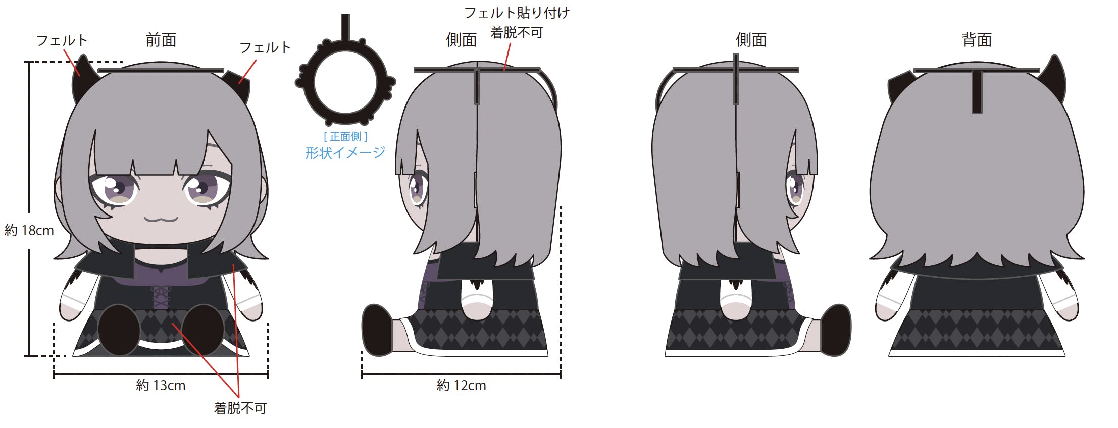 座った形のぬいぐるみ化。お部屋の机や棚に飾るのにぴったり。