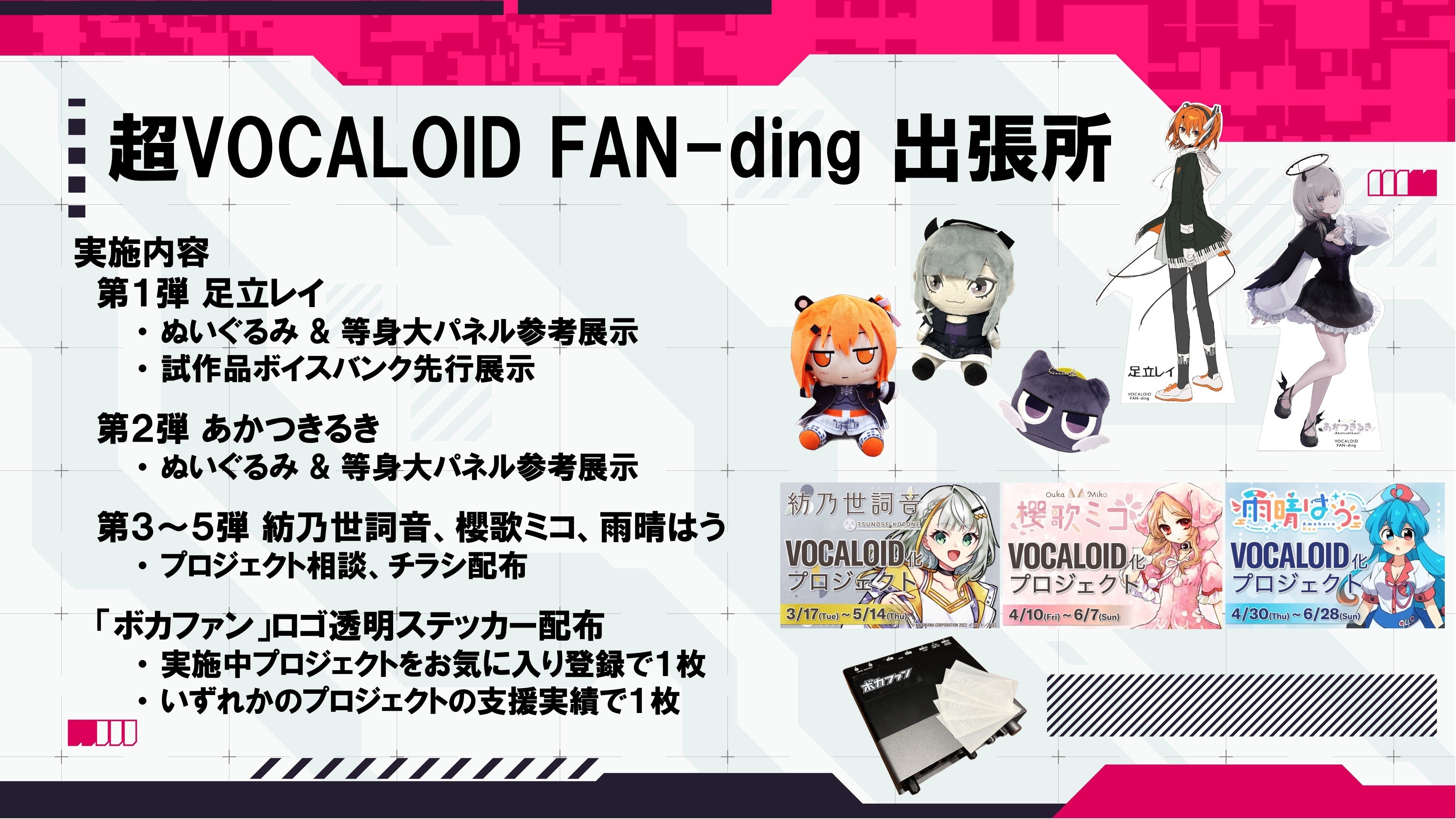 VOCALOID FAN-dingやあかつきるきボカロ化プロジェクトをより多くの皆さま知っていただくために、4月25日・26日に「超VOCALOID FAN-ding 出張所」を開設します。