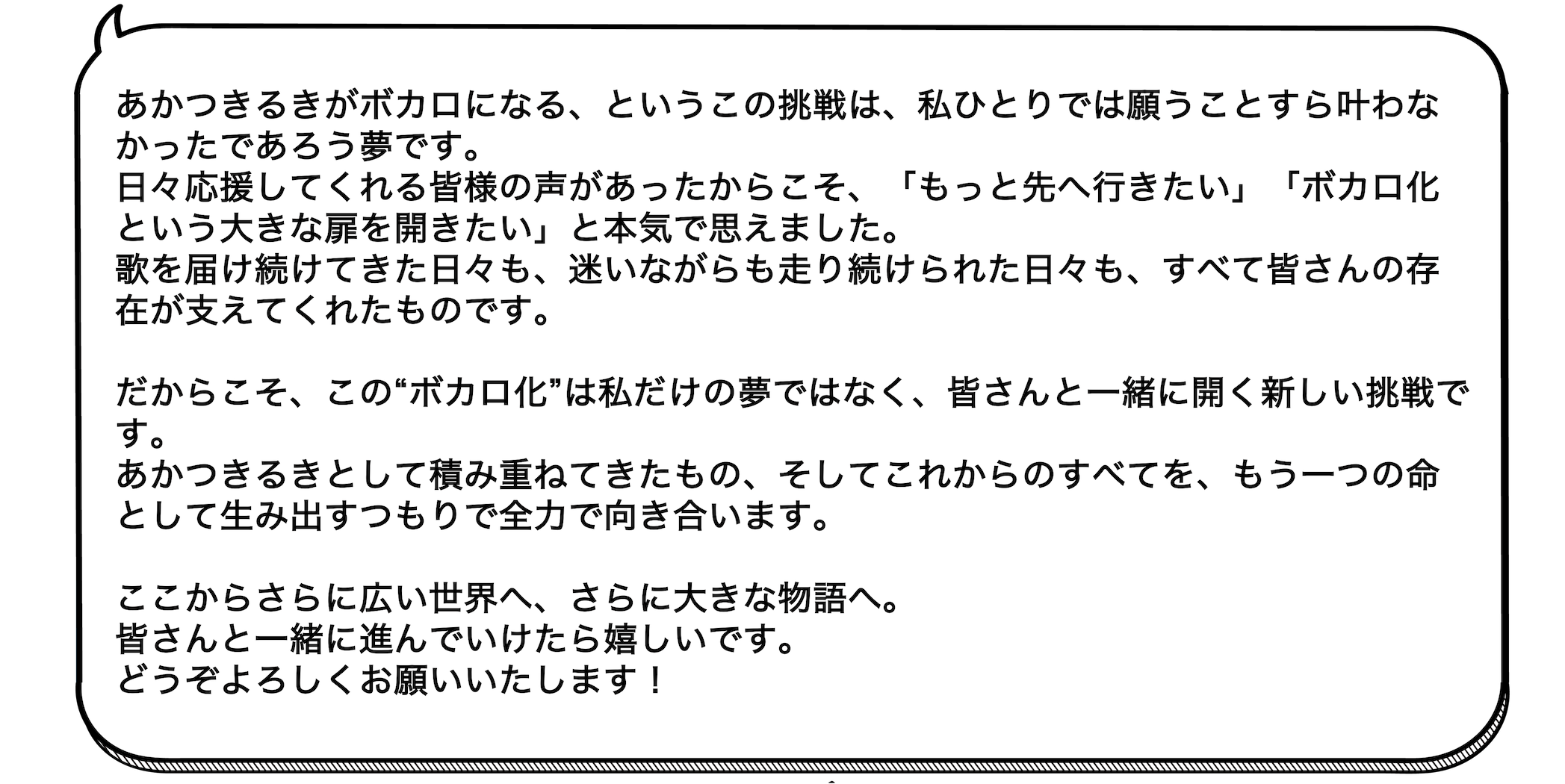 あかつきるきさんは、昔からボカロに憧れており、その熱い想いをヤマハに伝えていただきました。